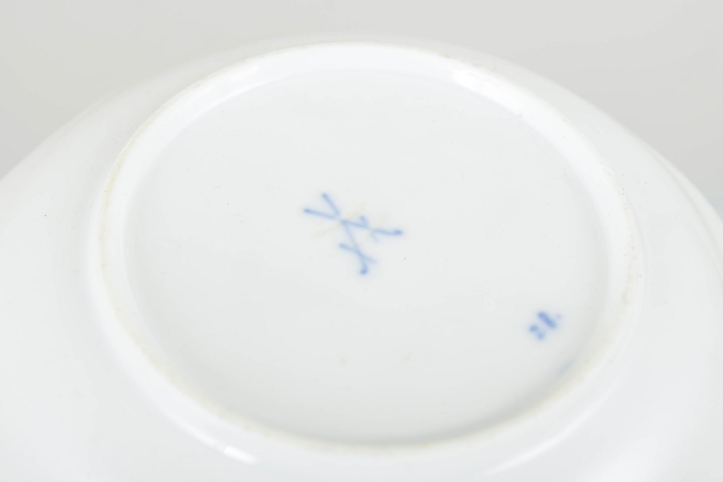 Kopper og underkopper: Stemplet med Meissens korslagte sværd, annulleret med to indridsede streger.