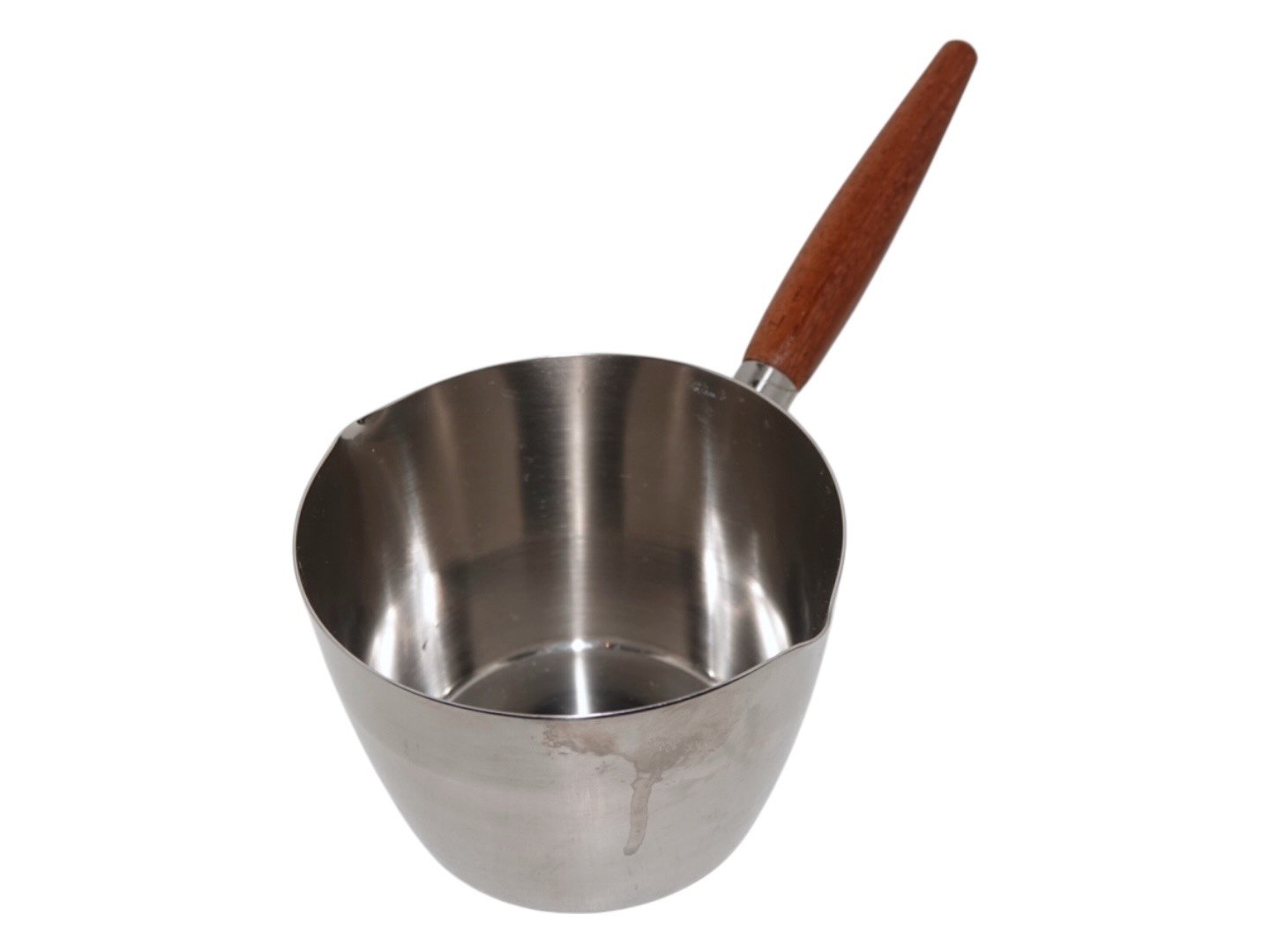Stelton rustfrit stål, lille sovsekande / smørnæb med håndtag i teaktræ.