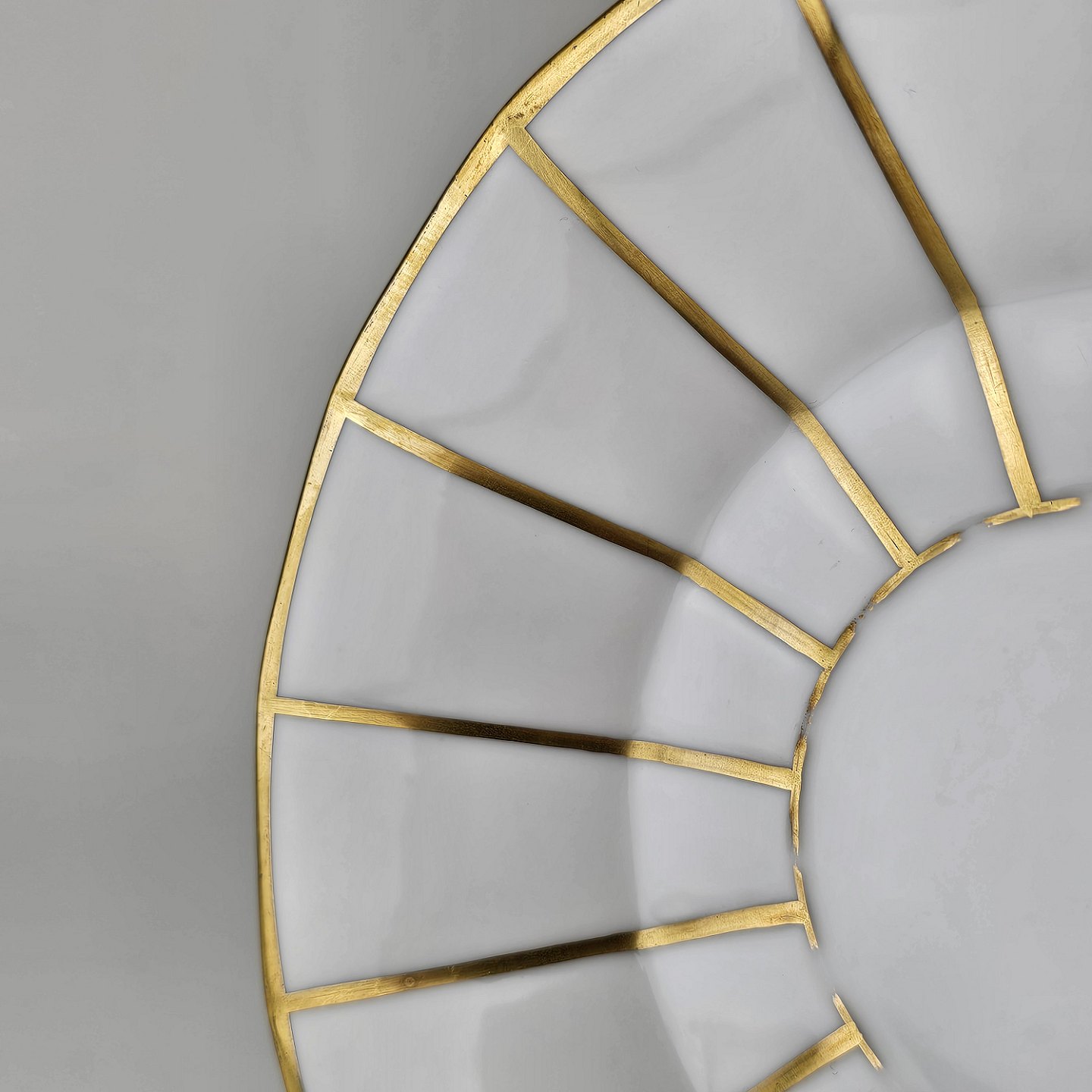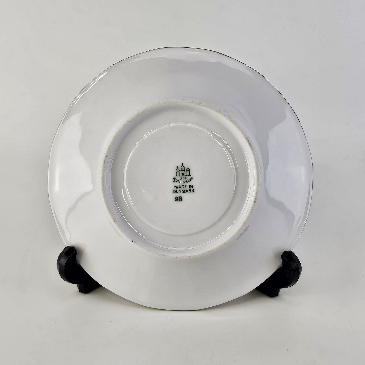 Kop og underkop med kantet form i hvidt porcelæn med gulddekoration og guldkant