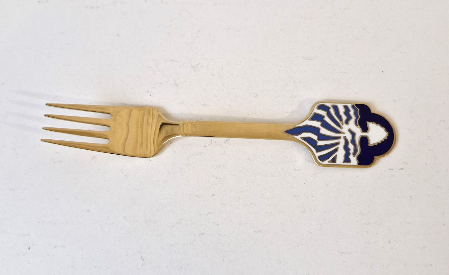 A.Michelsen julegaffel i forgyldt sterlingsølv og emalje fra 1986