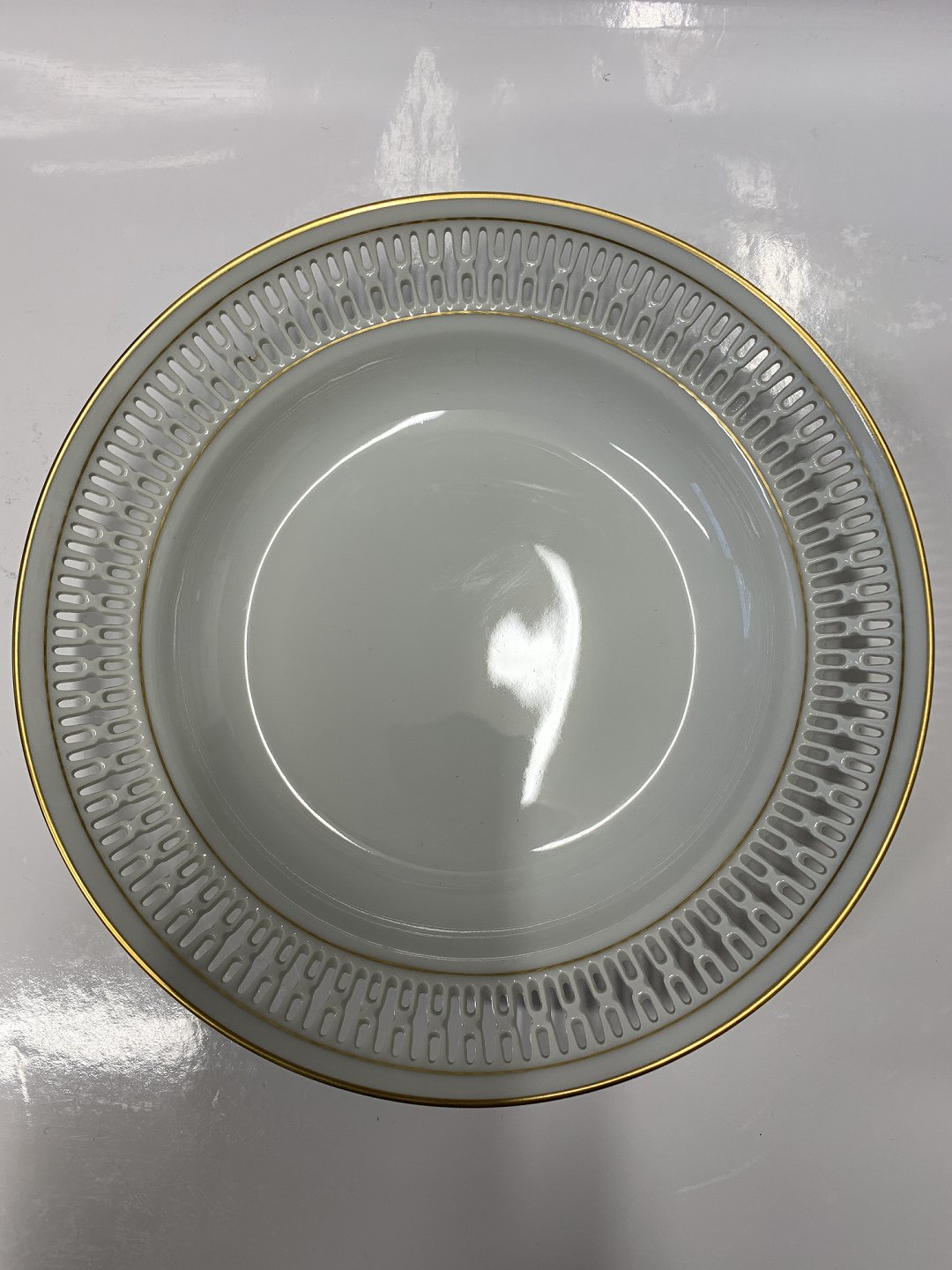Bing & Grøndahl, Haga, Dybtallerken med guld og gennembrudt kant.