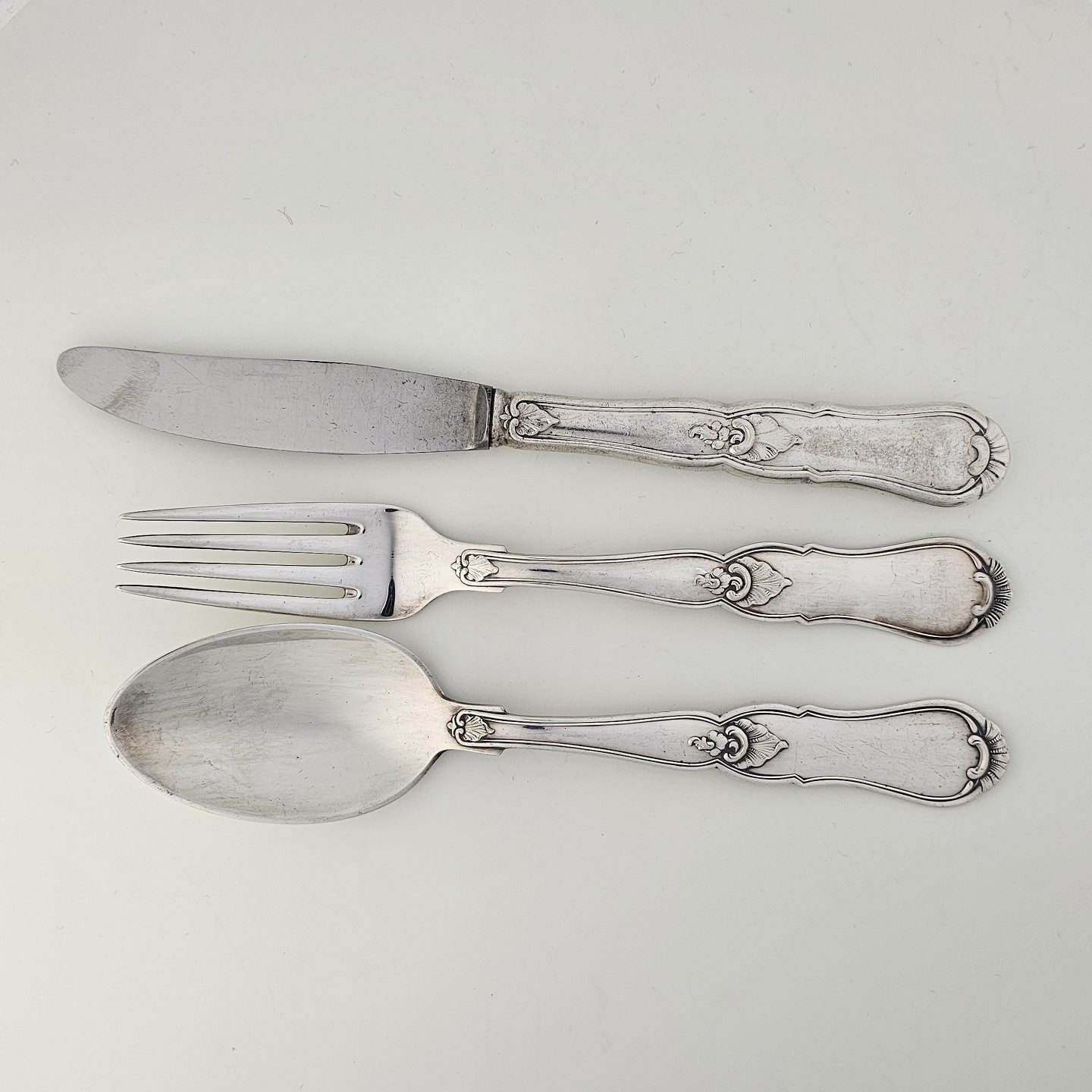 Bestik i sølvplet med navnet Marianne