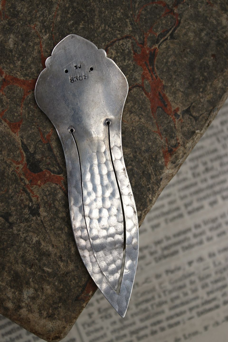 Gammelt bogmærke i sølv , stemplet 830s (initialer JN)