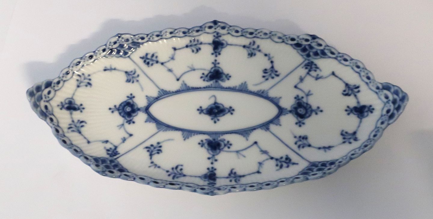 Royal Copenhagen. Musselmalet Halvblonde. Asiet. Model 1115. Længde 25 cm. (2 sortering).