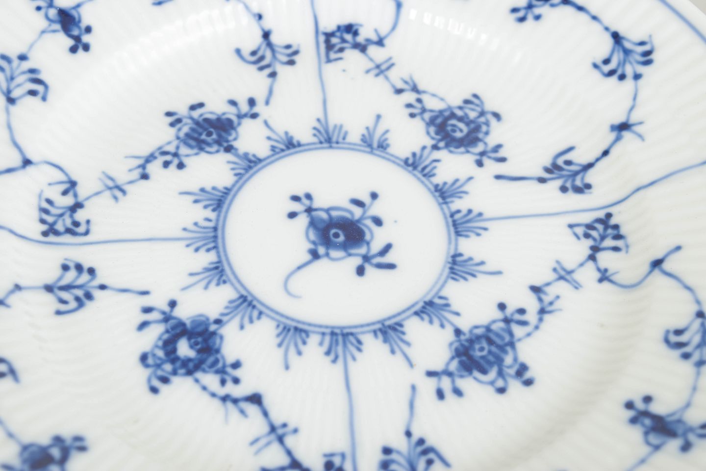 Musselmalet Riflet blev introduceret i 1775 og er Royal Copenhagens ældste og mest ikoniske stel. Det stringente, håndmalede mønster med rødder i kinesisk blå-hvid porcelæn har gjort stellet velegnet til både daglig brug og formelle borddækninger. Annullerede dele blev solgt med mindre fejl, som ikke påvirker funktionaliteten, og er i dag populære som klassisk brugsporcelæn.