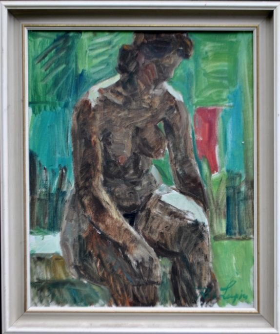 Leepin, Robert (1885 - 1967) Danmark: Nøgenstudie af kvinde. Olie på lærred. Signeret: Rob. Leepin. H: 55 cm. B: 46 cm.