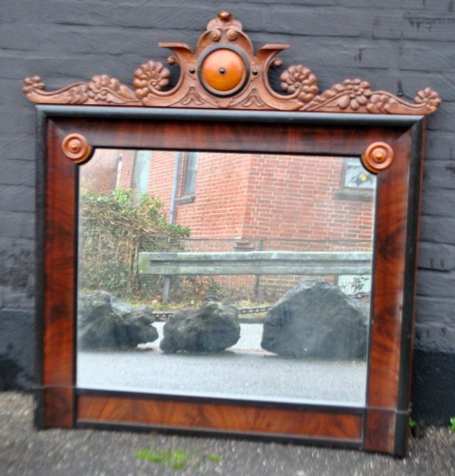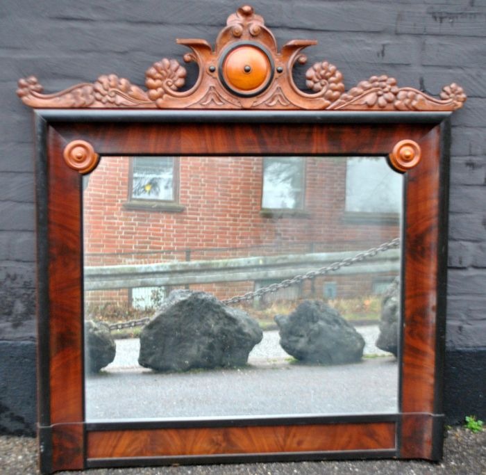 Mirror, 19th century. Mahogany frame with carvings. H: 108 cm. W: 103 cm.