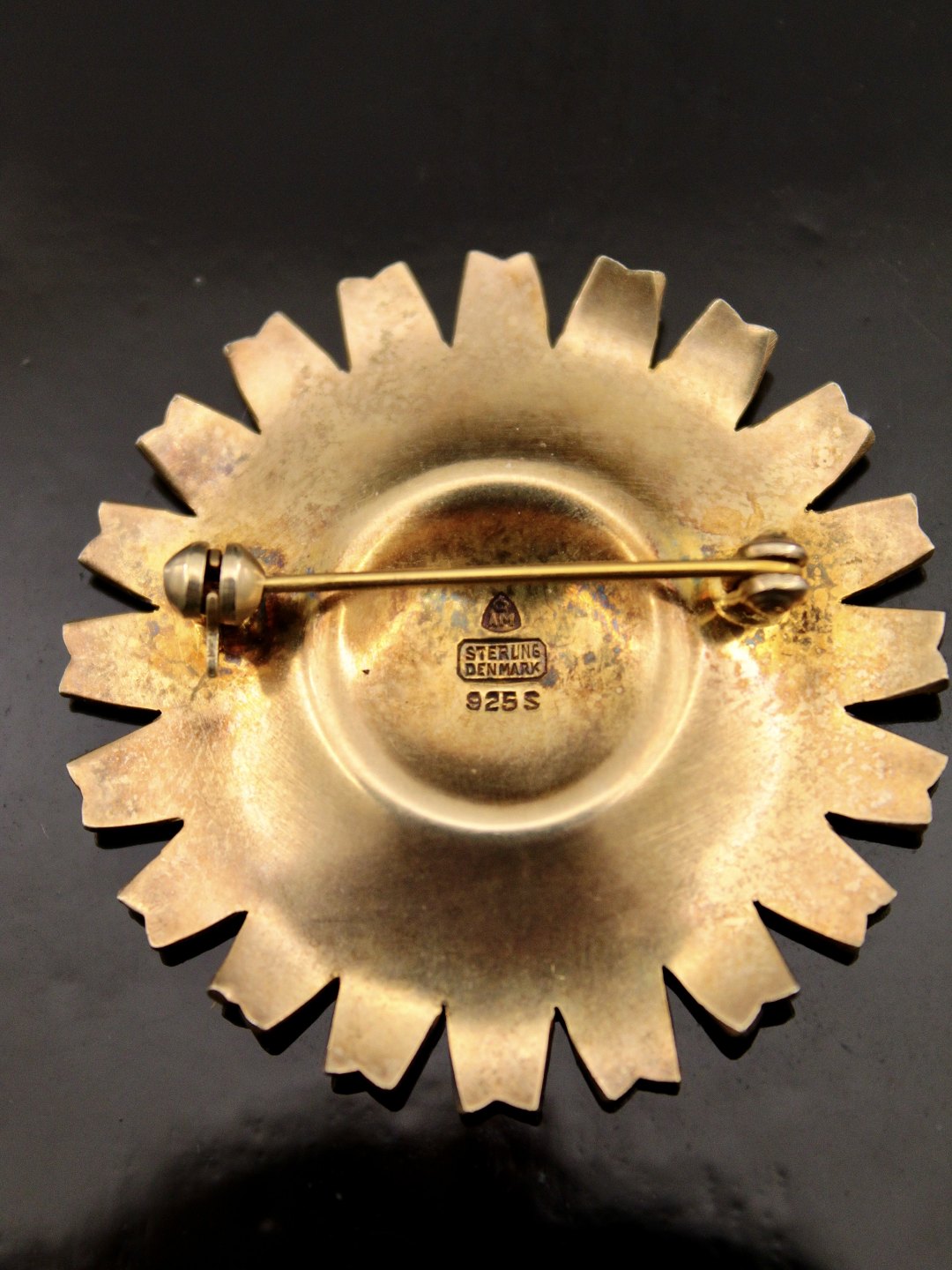 Anton Michelsen Forgyldt Sterling Sølv Marguerit Broche med emalje D. 4,2 cm. emne nr. 628621
