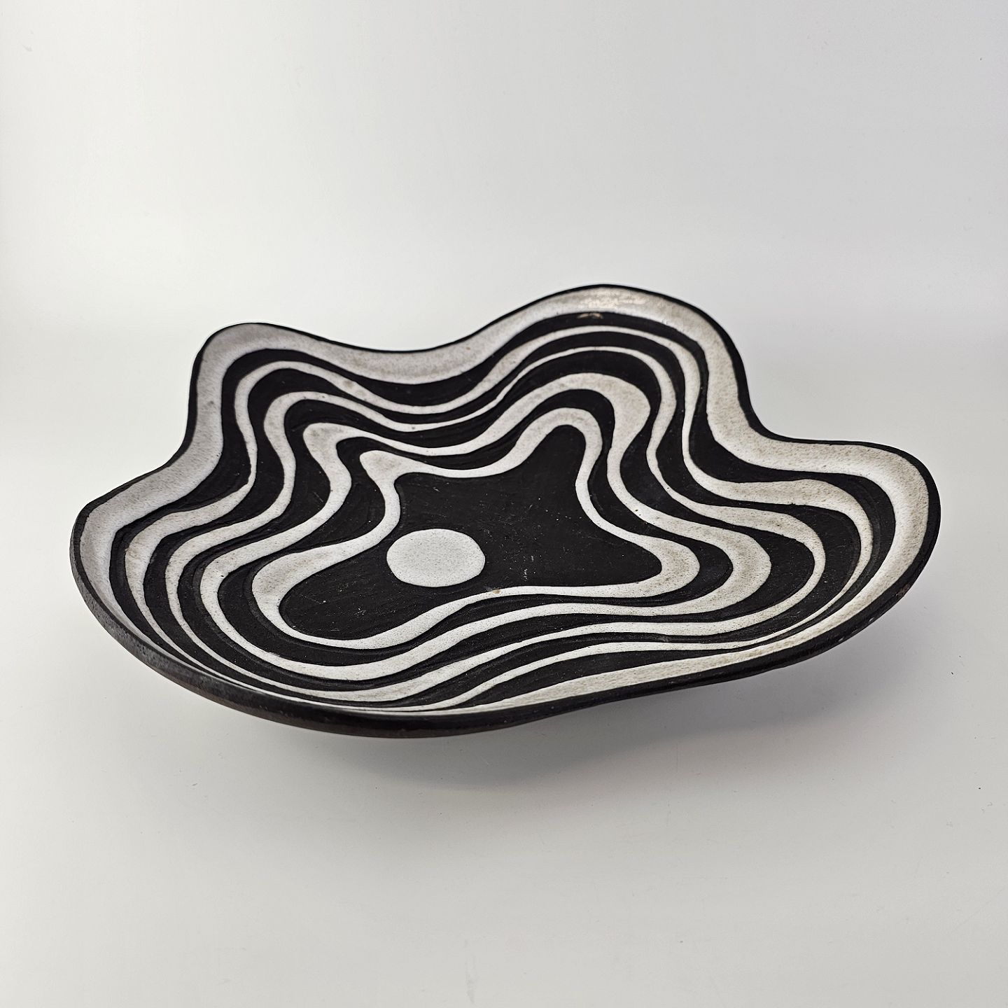 Fad i keramik fra Negro serien med abstrakt motiv på mørk baggrund. Nr. 5608-2