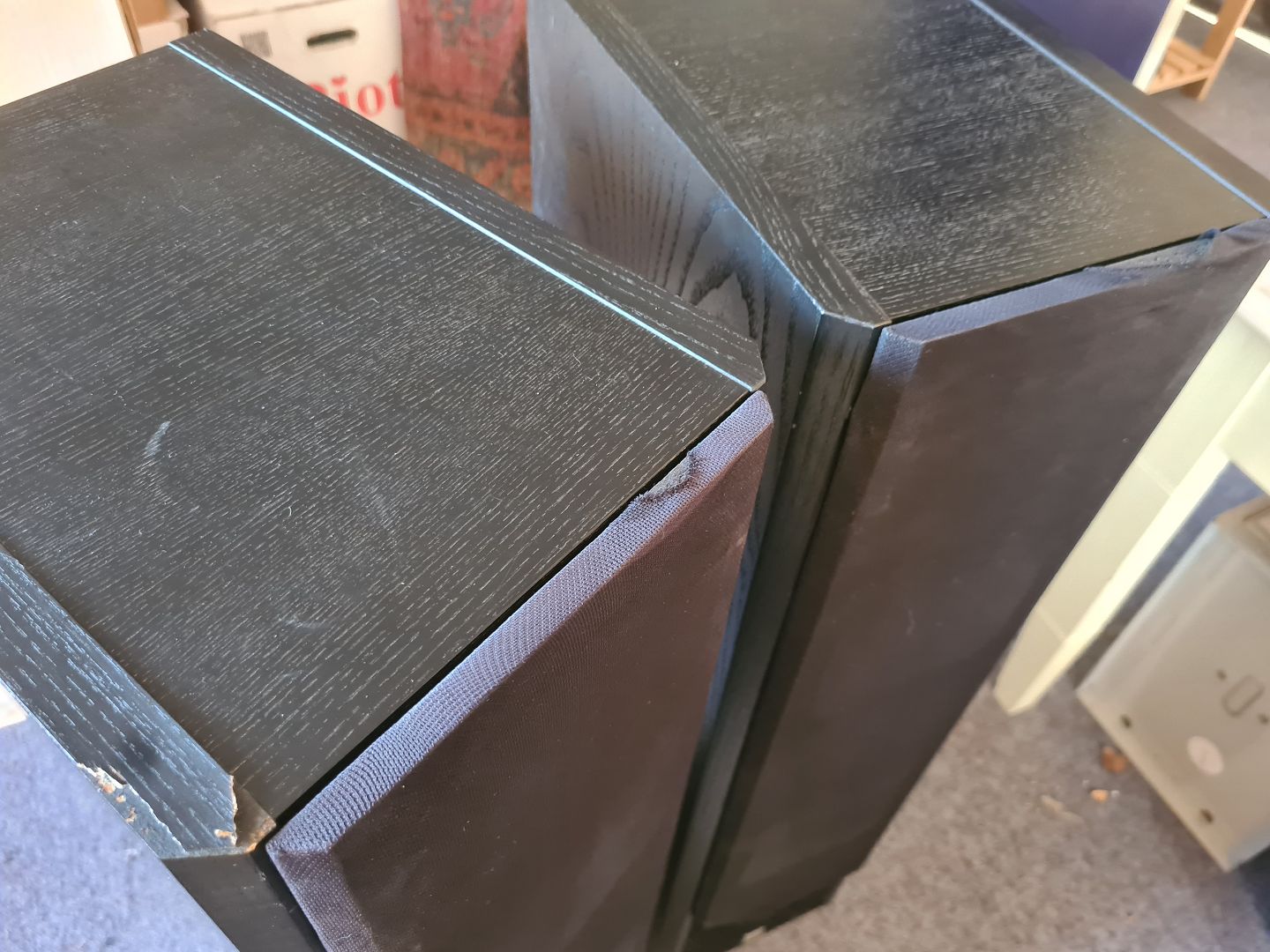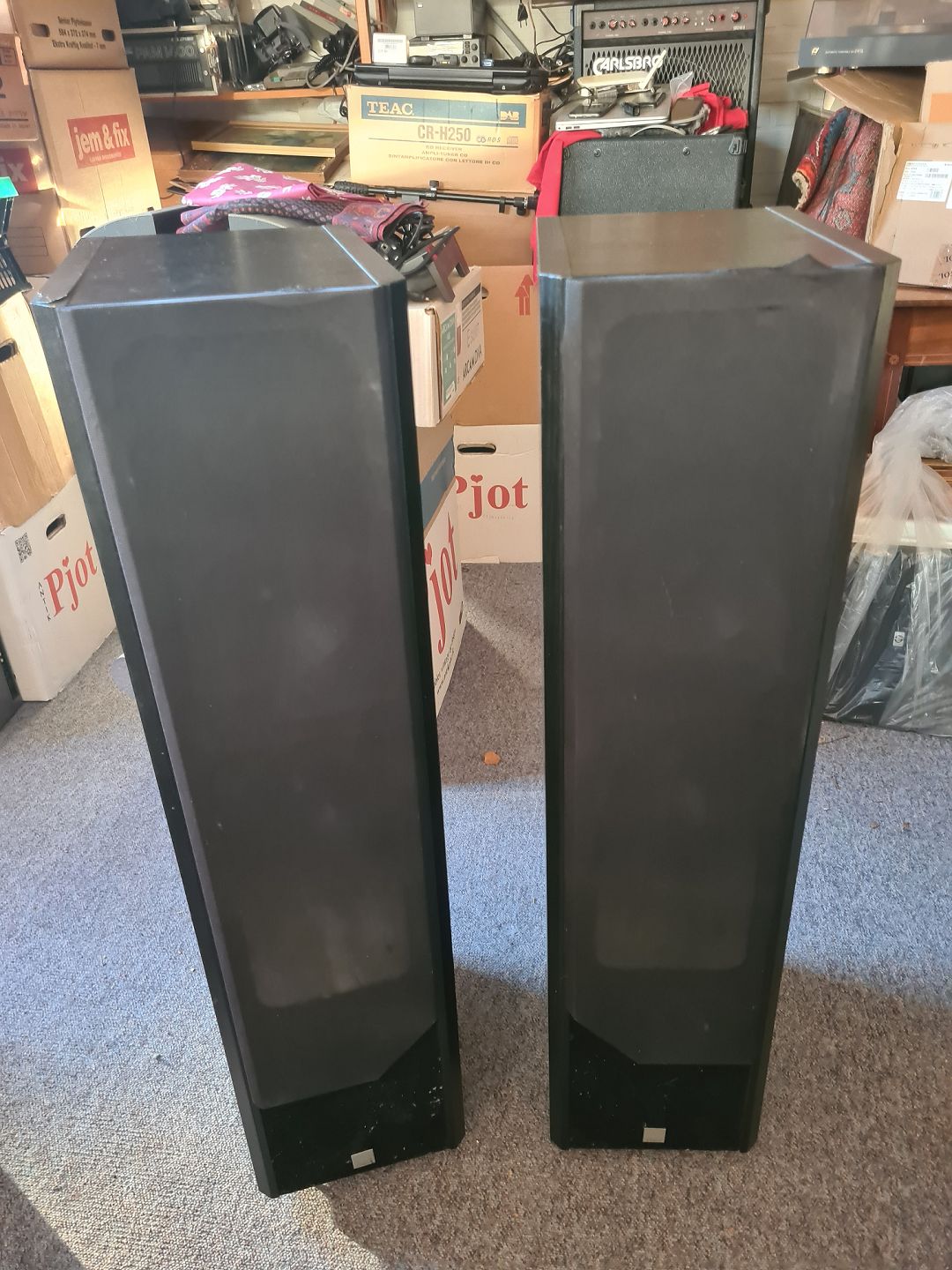 Højtalerpar fra DALI model 400. Testet og lyder fint. Fremstår dog med lidt skrammer på kabinetterne. (Billede)