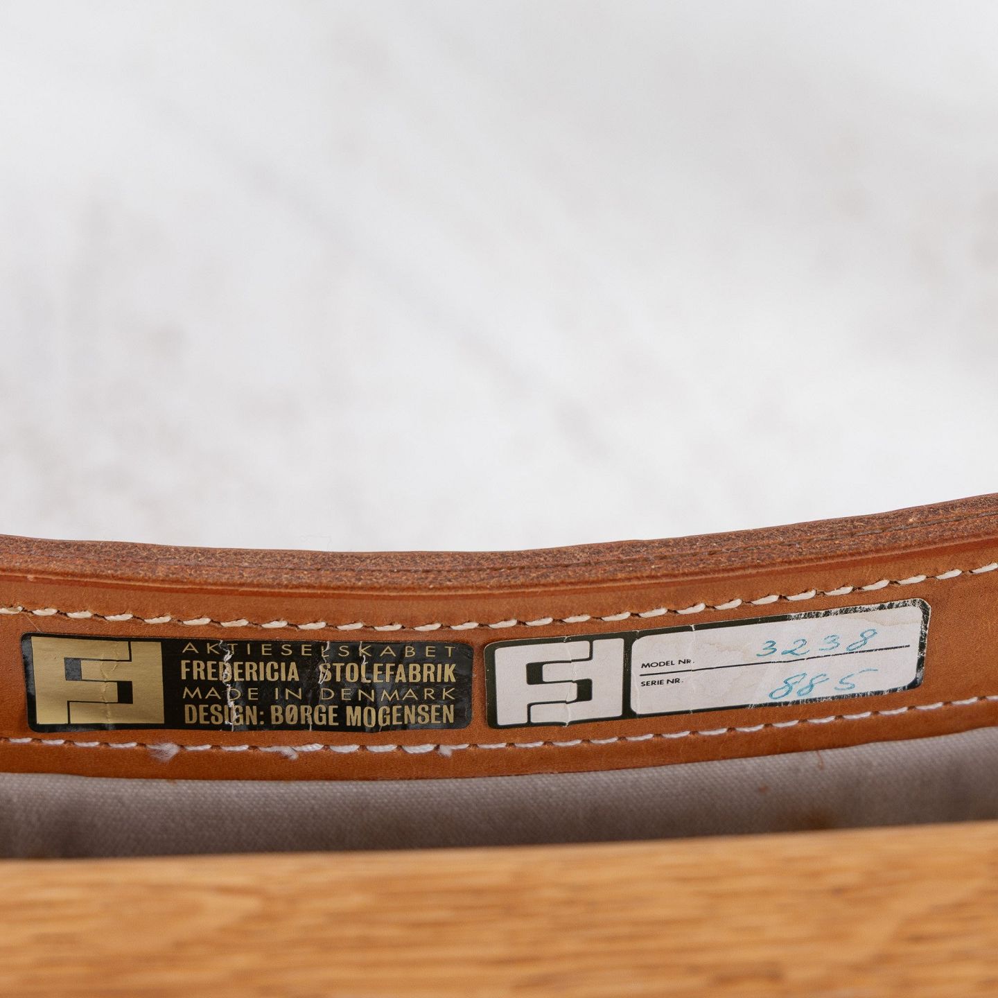BM 3238 - 'Jagtstol' i patineret egetræ og kernelæder m. armlæn. Mærket fra producent.