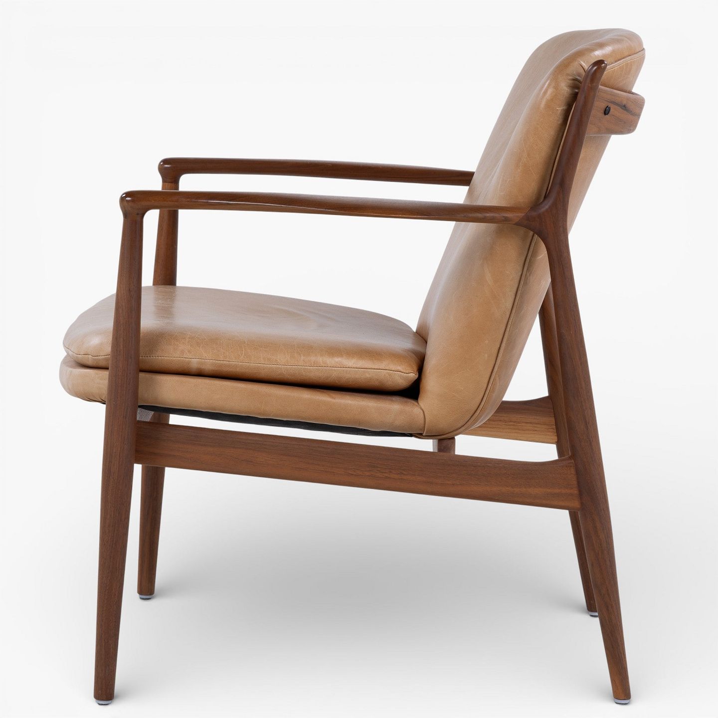 FJ 51 - Par 'Delegeret stolen'-lænestole i valnød og patineret naturlæder. Formgivet i 1951.