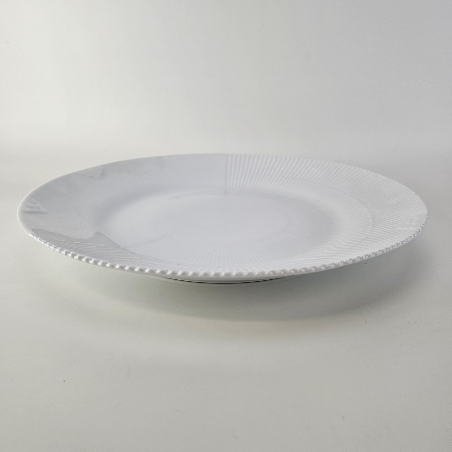 Service i glat porcelæn med let riflet kant
