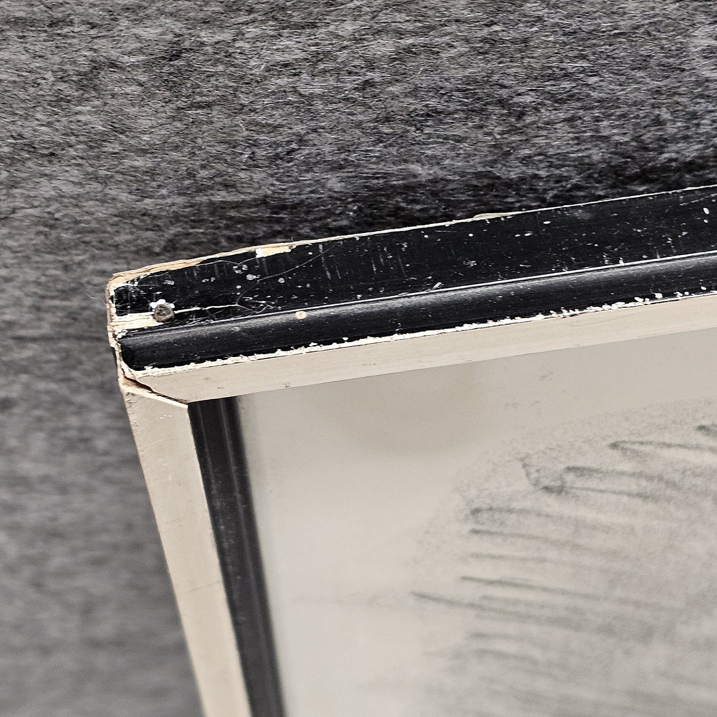 Tryk på papir med motiv af en kvinde med tre børn monteret i sort og hvid ramme