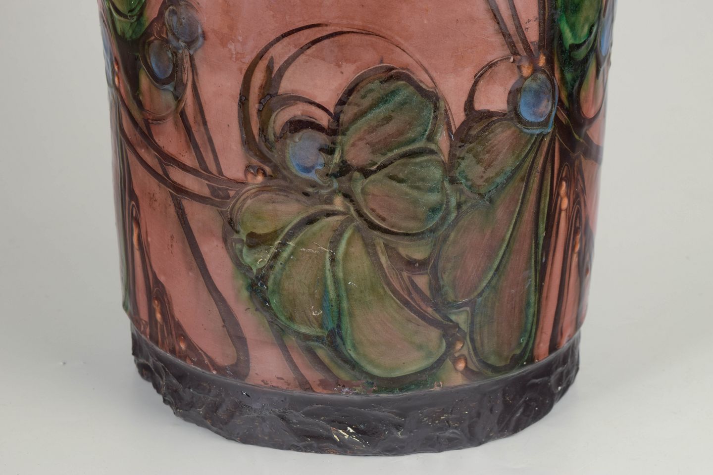I 1930’erne oplevede Kähler Keramik en kunstnerisk storhedstid, hvor Art Deco-stilen blev fortolket i både form og dekoration. Perioden er kendetegnet ved monumentale former, rige glasurer og håndmalede dekorationer, ofte inspireret af naturens organiske linjer. Store gulvvaser som denne blev produceret i begrænsede antal og regnes i dag blandt de mest eftertragtede arbejder fra Kählers mellemkrigsproduktion.