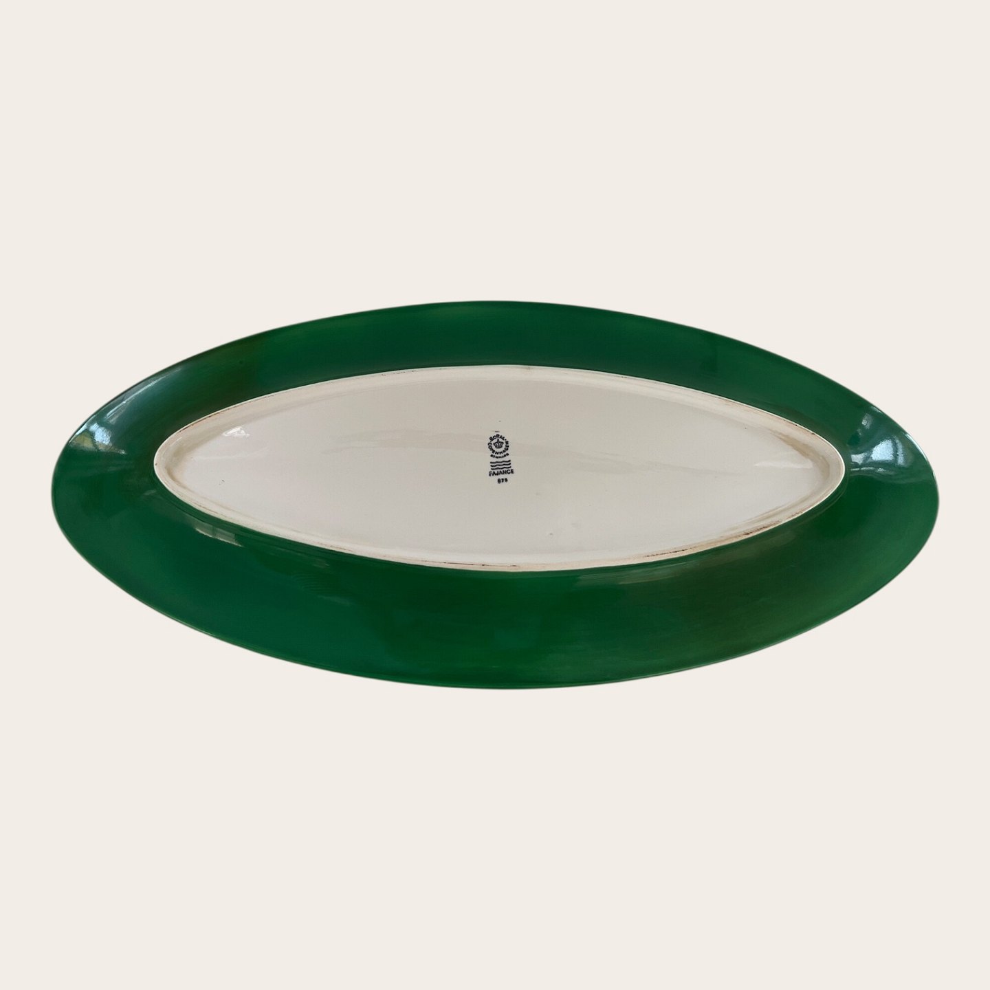 | Royal Copenhagen, Aluminia, Ursula, Stort fad, Grøn/ hvid #375, 1. sortering, 57,5cm lang, 26cm bred, Design Ursula Munch Petersen *Pæn stand med lettere brugsspor*
