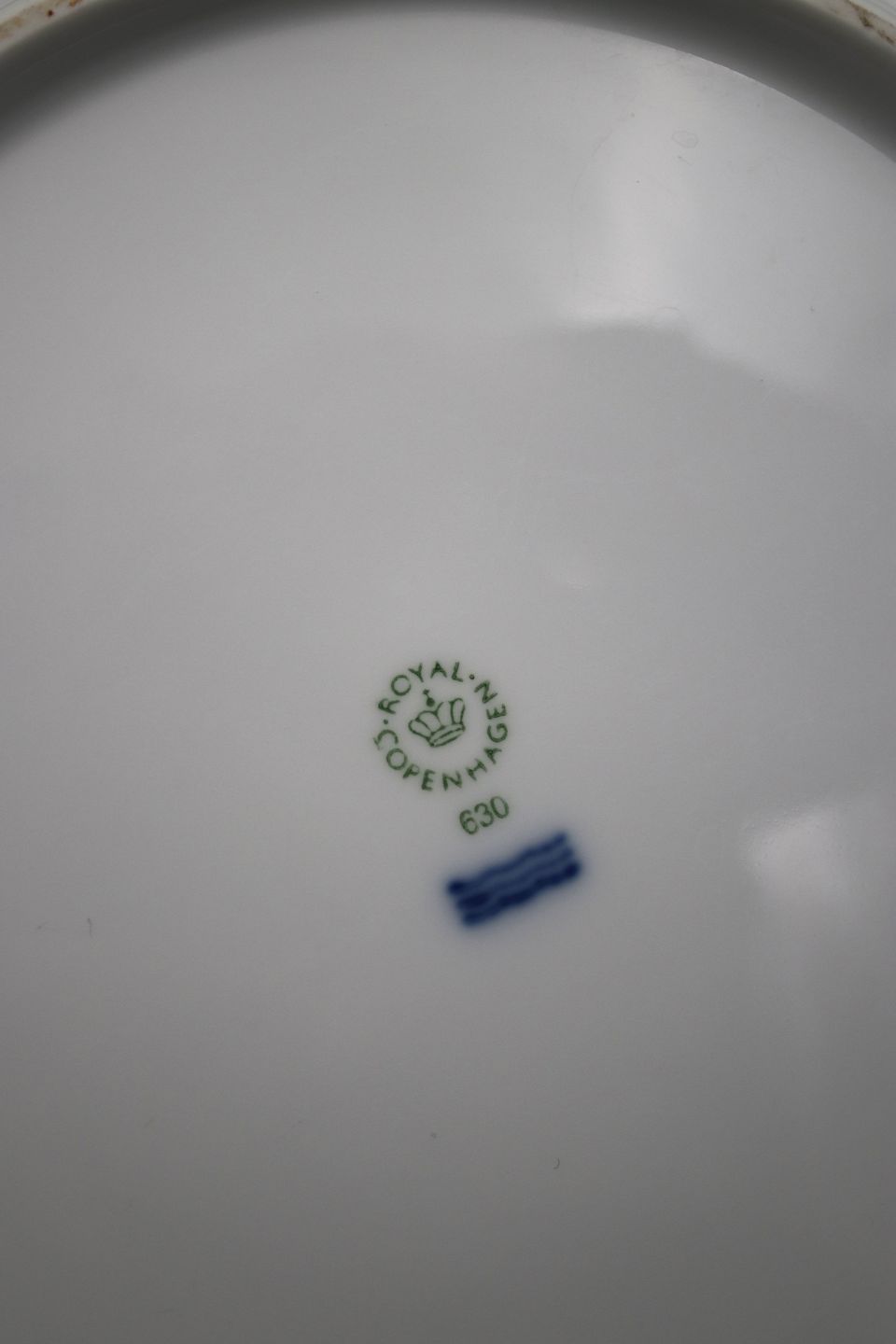 Dekorationsnummer: 630. 1.sort. Dia.: 31cm. , med gamle stempler produceret i Danmark.