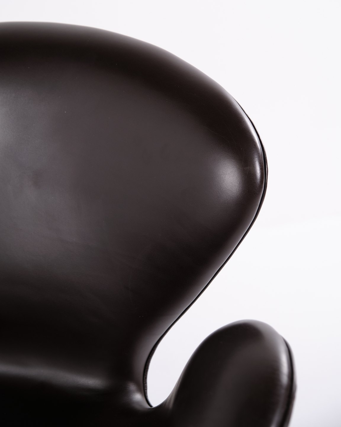 Svanen lænestol model 3320 af Arne Jacobsen for Fritz Hansen. Brunt læder. Produceret 2007. Ikonisk dansk designklassiker.