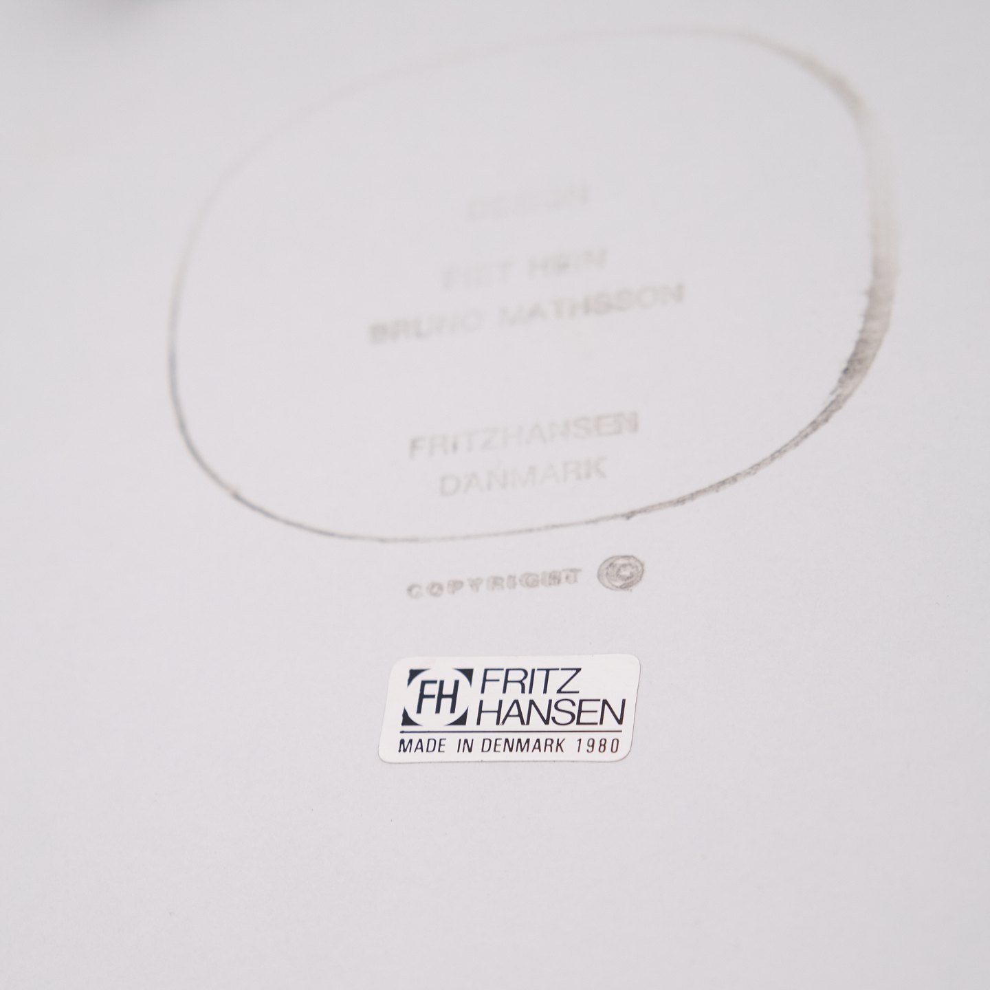 Super Ellipse spisebord model B614 designet af Piet Hein, Bruno Mathsson og Arne Jacobsen for Fritz Hansen. Hvid laminat. Ikonisk dansk designklassiker.
