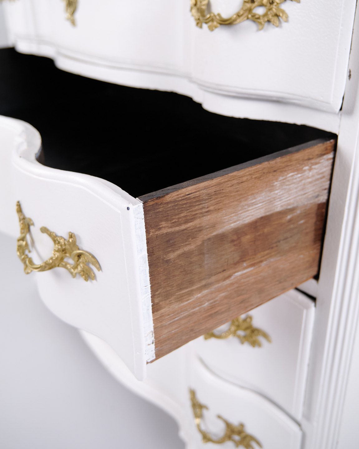 Antik Barok Kommode/Dragkiste Med 4 Skuffer - Barok - Hvidmalet & Messing Greb - 1760erne