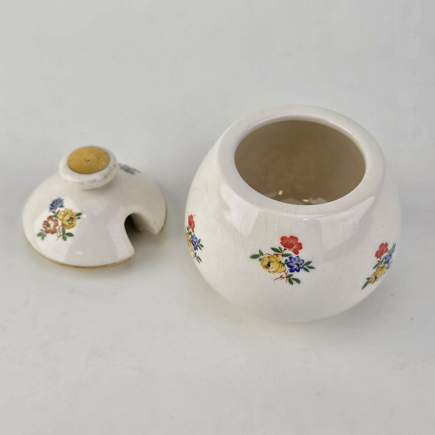 Anna Sofie er hvid fajance dekoreret med guld kant og små farverige blomster