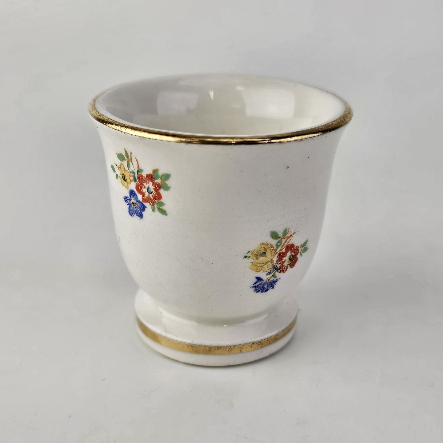 Anna Sofie er hvidt fajance dekoreret med guld kant og små farverige blomster