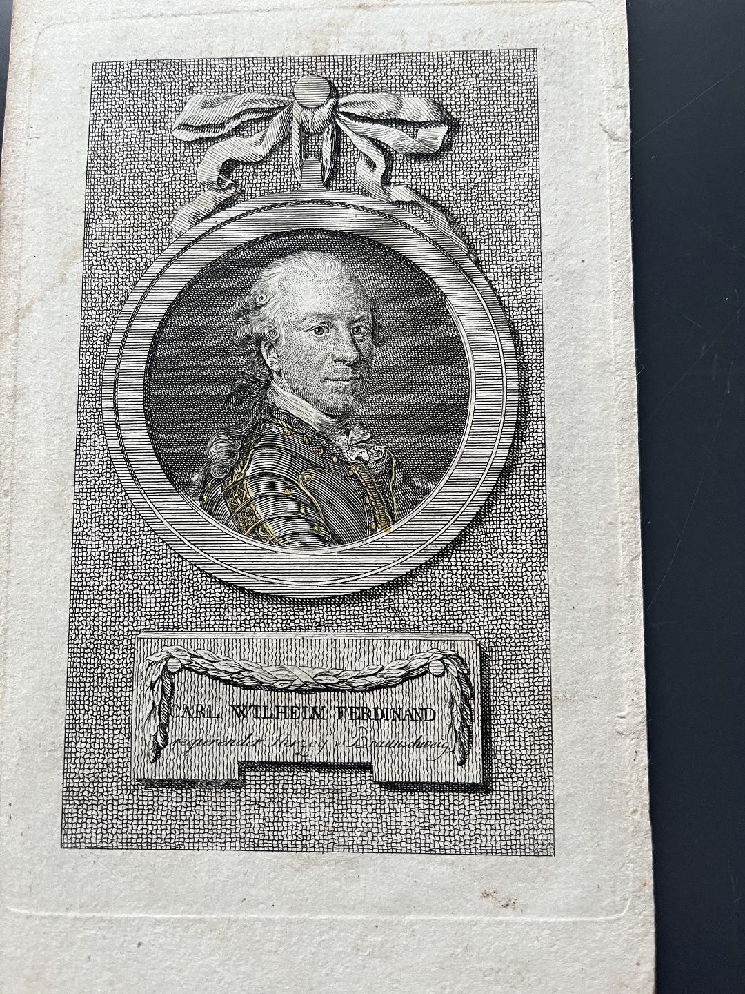 Kobberstik af Clemens Kohl - Portræt af Feltmarskal Hertug Karl Wilhelm Ferdinand til Braunschweig.