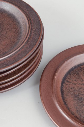 Sæt bestående af seks salattallerkener i stentøj fra Ruska-serien hos Arabia, udført med den karakteristiske, melerede brune glasur i varme jordtoner. Klassisk cirkulær form med let forhøjet fane og levende glasuroverflade, hvor naturlige variationer giver hvert stykke et individuelt udtryk.