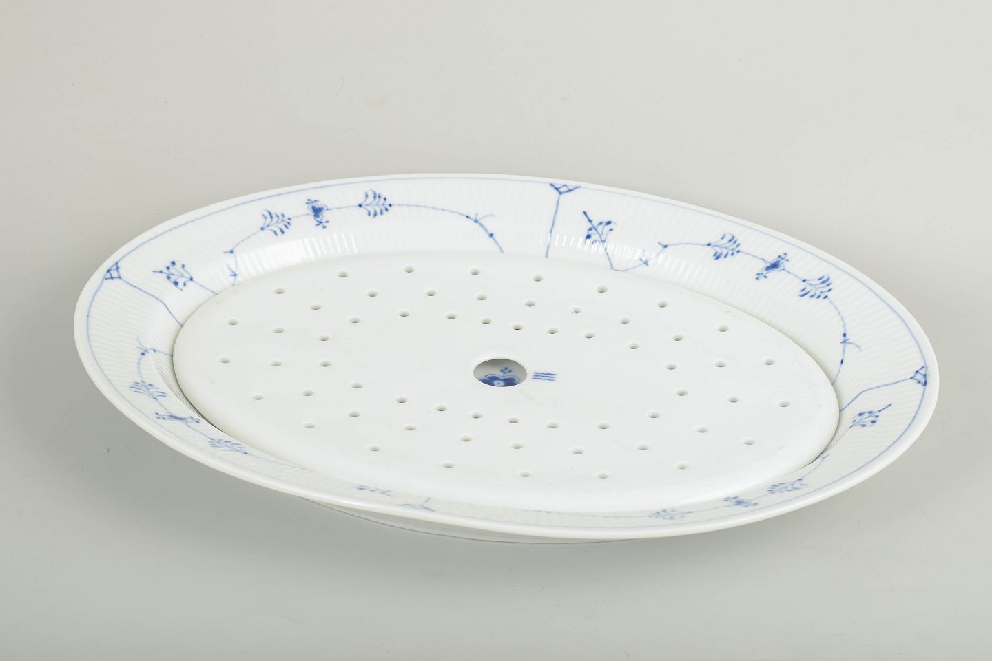Royal Copenhagen, Musselmalet riflet fiskefad med tilhørende fiskerist.