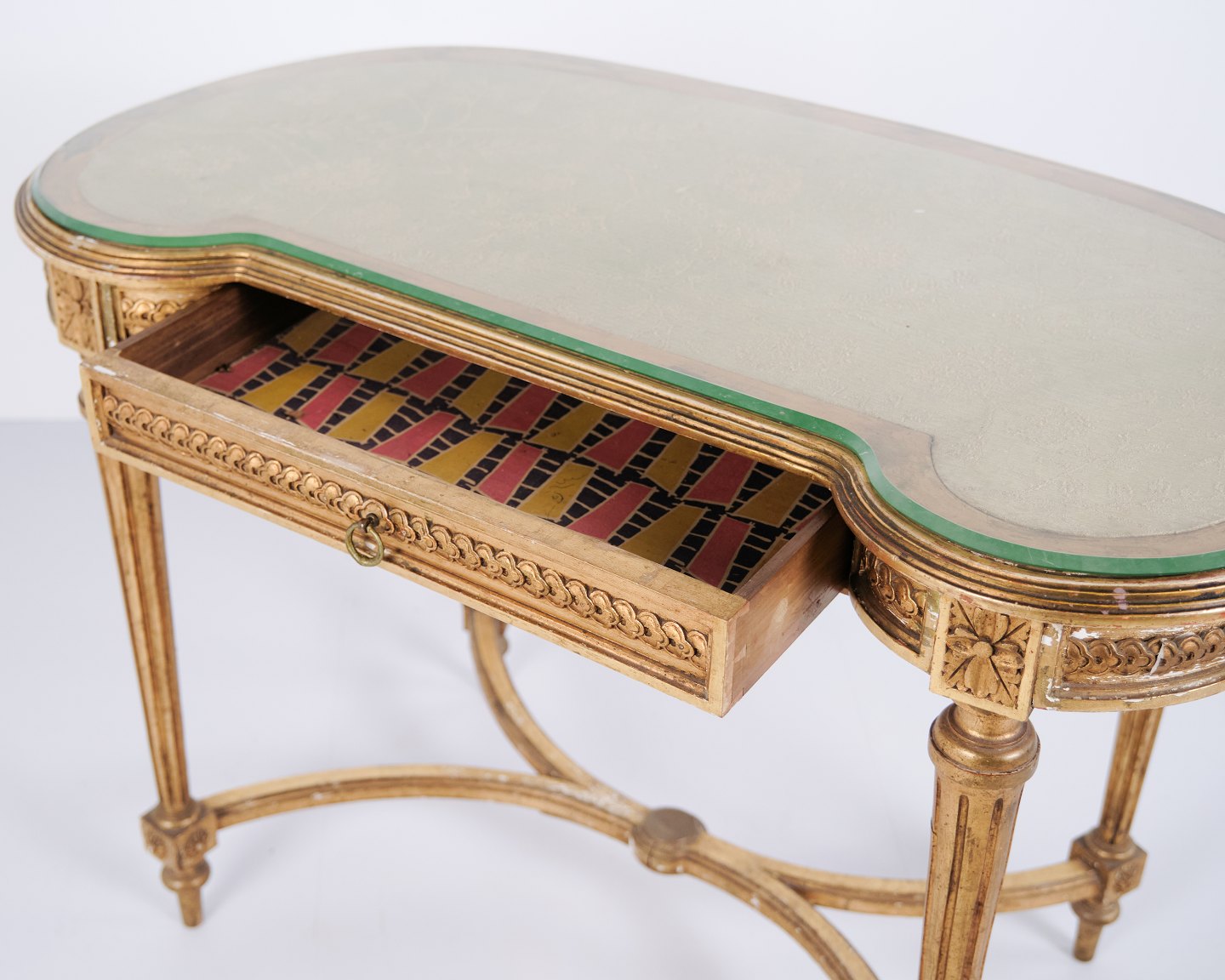 Antikt Skrivebord Med Glasbordplade & Skuffe – Gustaviansk/Louis XVI-stil – Forgyldt Træ – År 1850erne