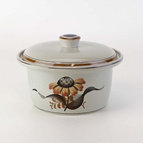 Smørskål med låg i fajance fra stellet Kirsten, som blev fremstillet i perioden 1934-1957. Nr. 1749