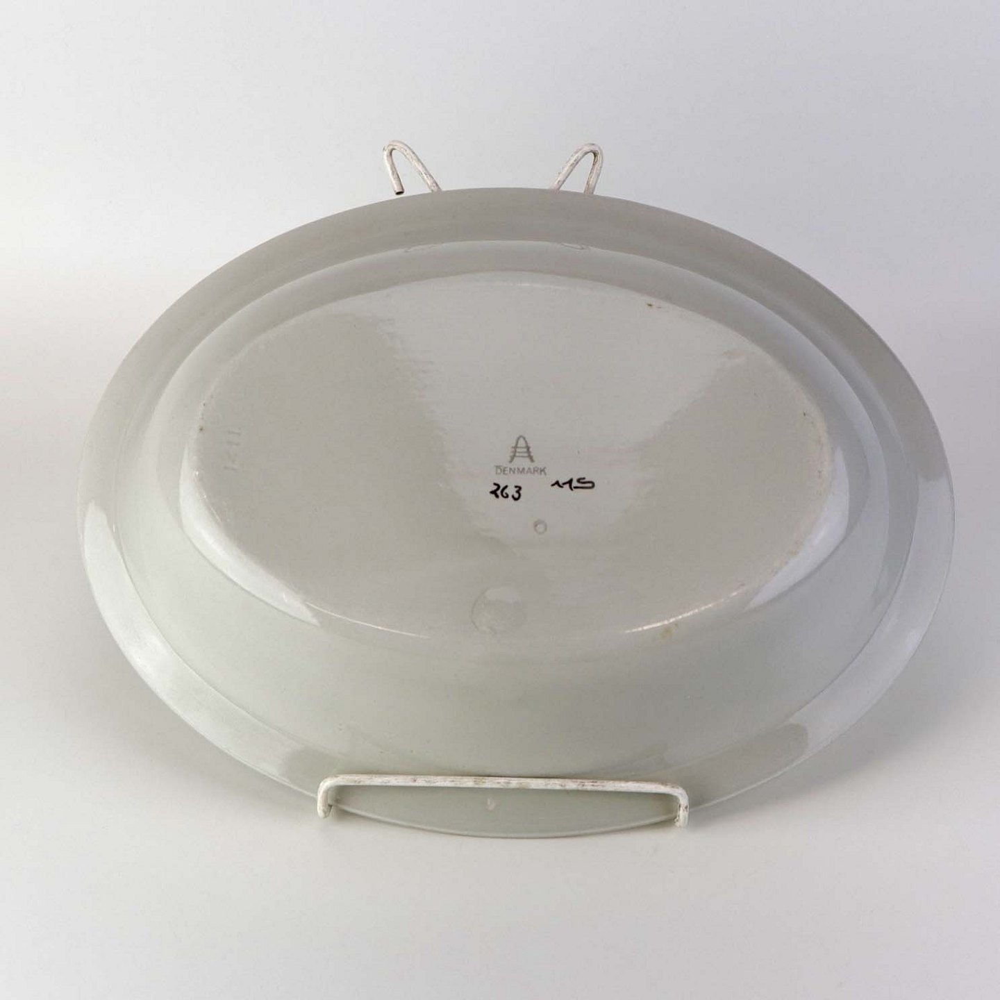 Oval serveringsskål i fajance fra stellet Kirsten, som blev fremstillet i perioden 1934-1957. Nr. 263
