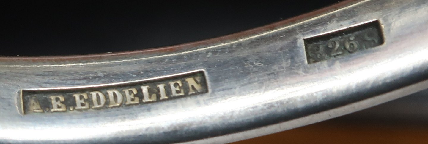 A. E. Eddelien, København. Sølvskål med glas indsats (826). Længde 14 cm.
