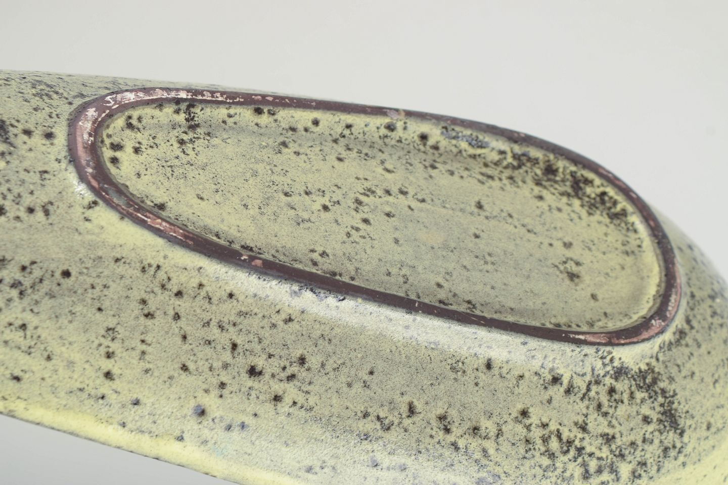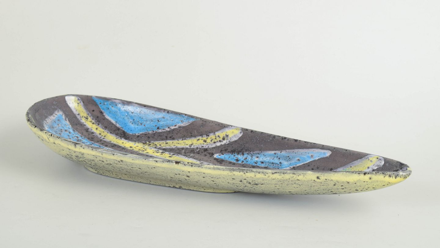 Guido Gambone (1909–1969) var en af Italiens mest markante keramikere i midten af det 20. århundrede, kendt for sin sikre formgivning og sine levende, grafiske dekorationer. Hans arbejder spænder fra skulpturelle former til funktionelle objekter, ofte kendetegnet ved stærke farvefelter, frihåndsmotiver og et tydeligt modernistisk udtryk. Bitossi i Montelupo Fiorentino var samtidig blandt de førende italienske værksteder inden for kunstkeramik, og produktionen fra 1950’erne og 60’erne har i dag status som eftertragtet italiensk designklassiker.