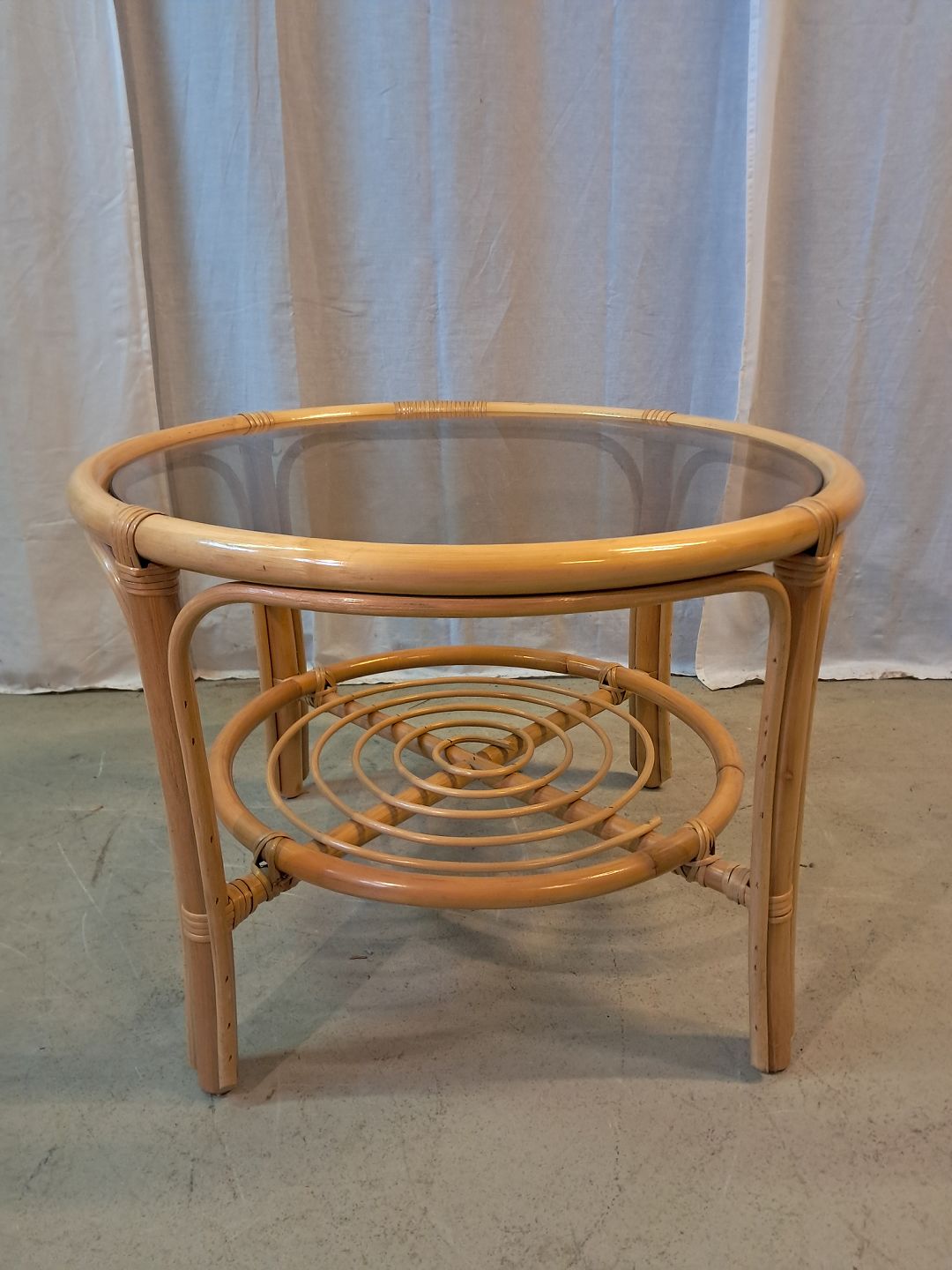 Sofabord i bambus med glasplade, fra 1990erne.