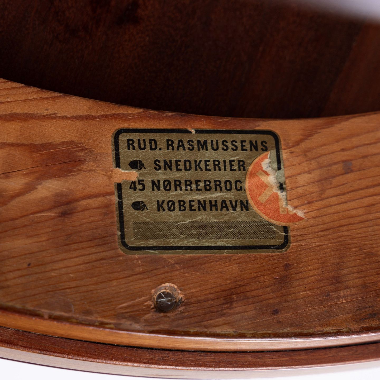 Rundt sofabord i patineret mahogni m. underliggende hylde. Mærket fra producent.