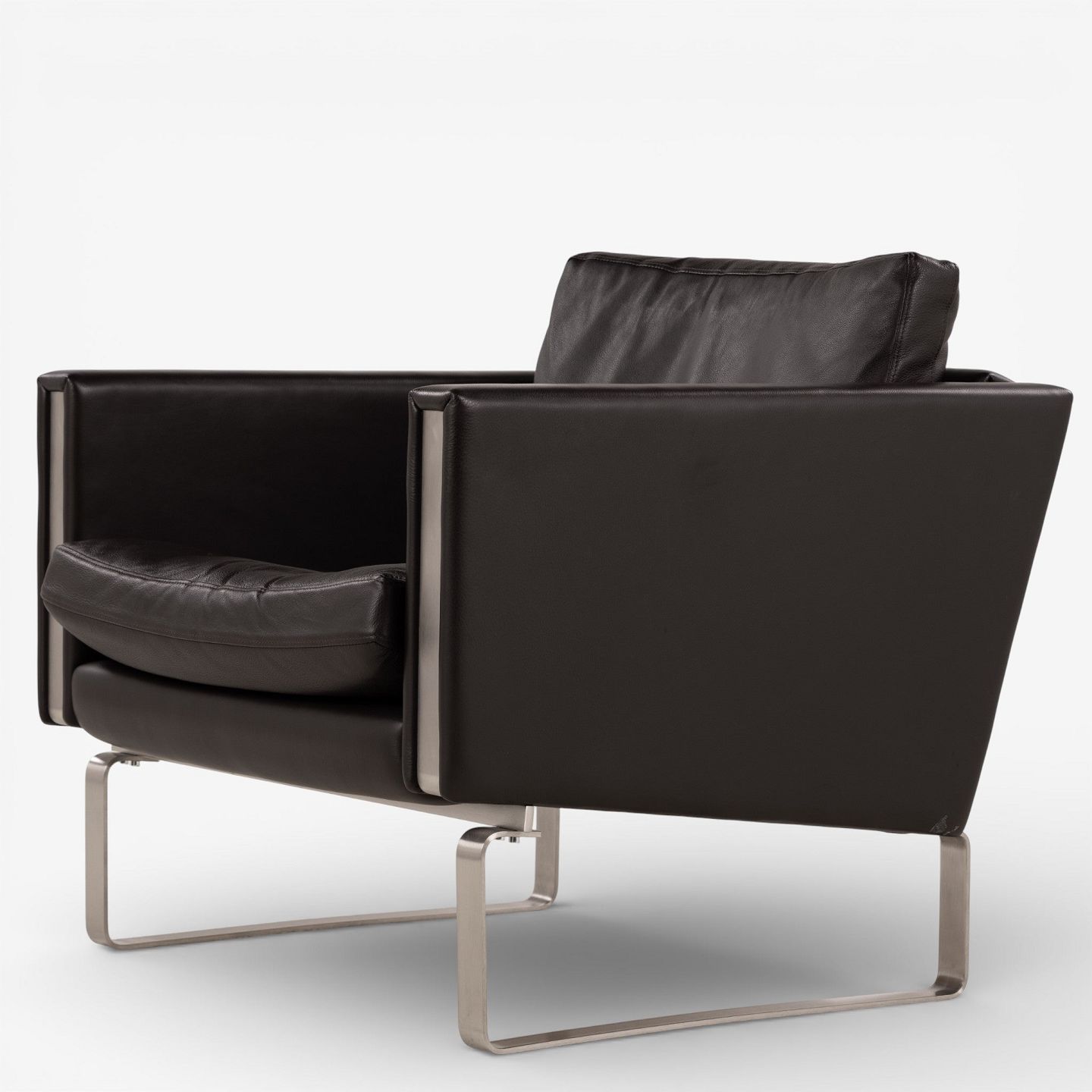 CH 101 - Lænestol i mørkebrunt, patineret semi-anilinlæder med stel i stål. Mærket fra producent.