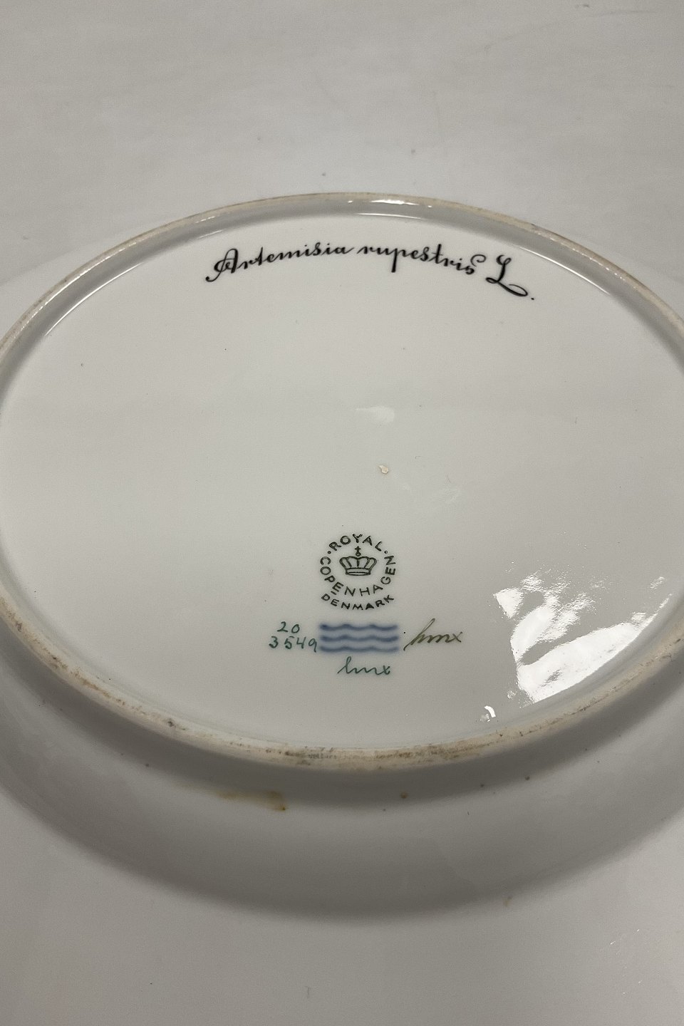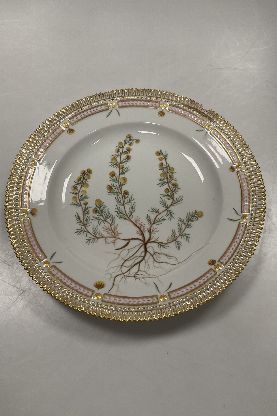 Royal Copenhagen Flora Danica Spisetallerken No 3549. Måler Diam 26 cm. (10 15/64 in) 1. Sortering. Latinsk Navn: Artemisia rupestris L.