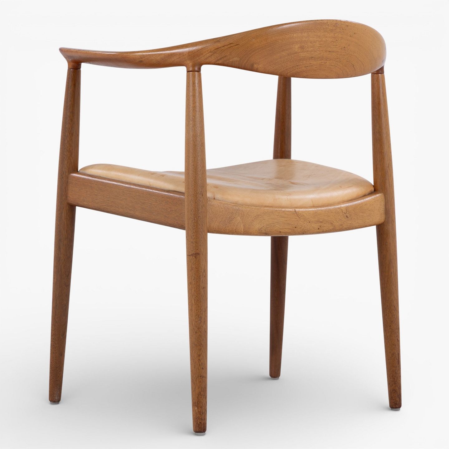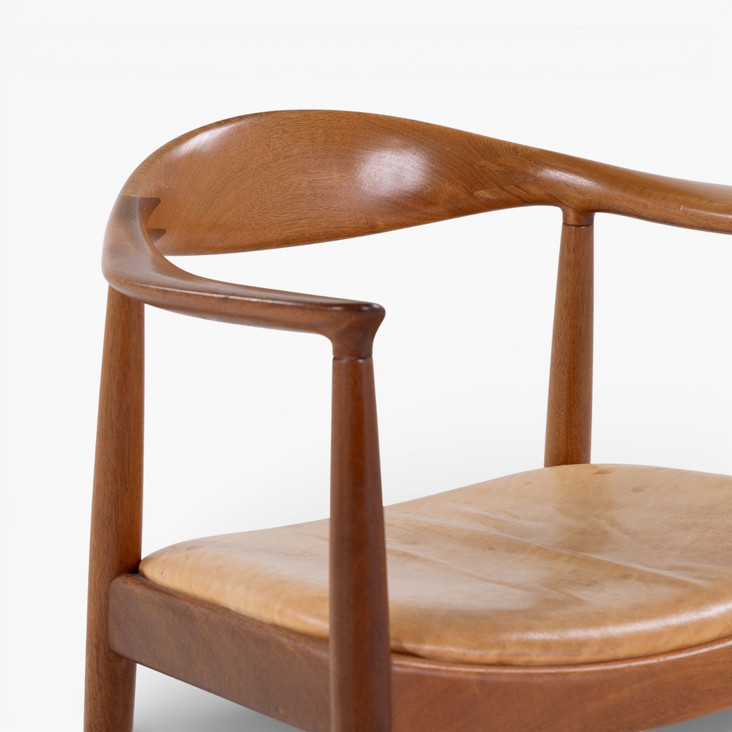 JH 503 - 'The Chair'-armstol i mahogni med sæde i patineret naturlæder. Mærket fra producent.