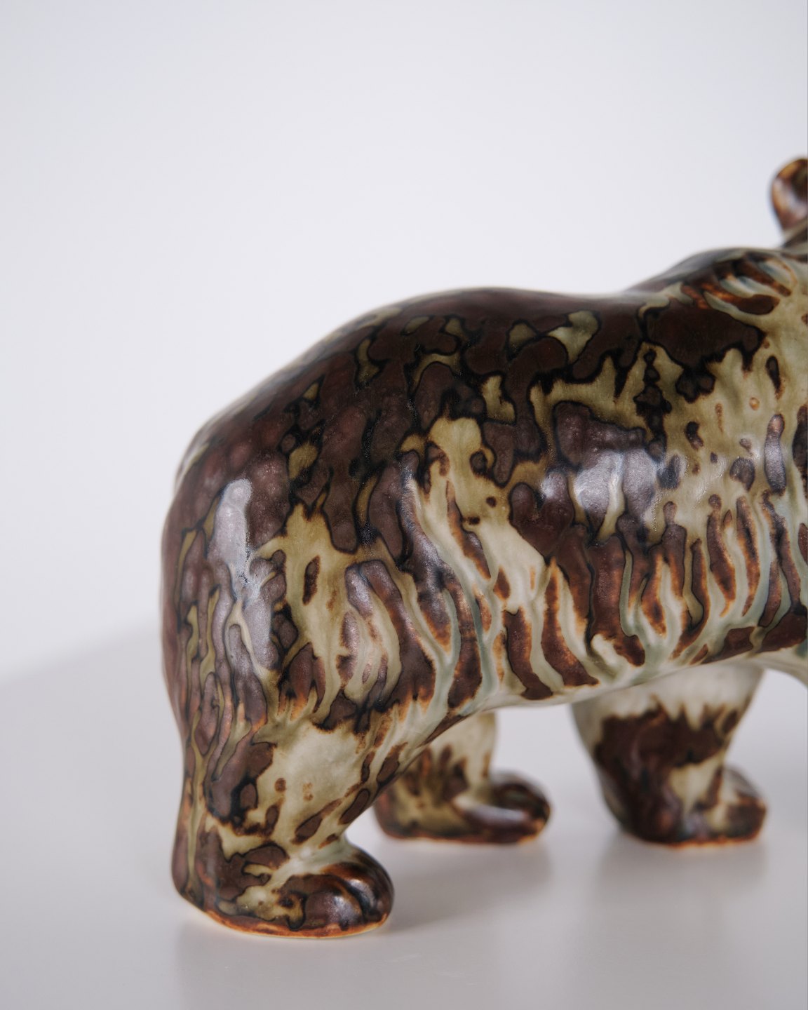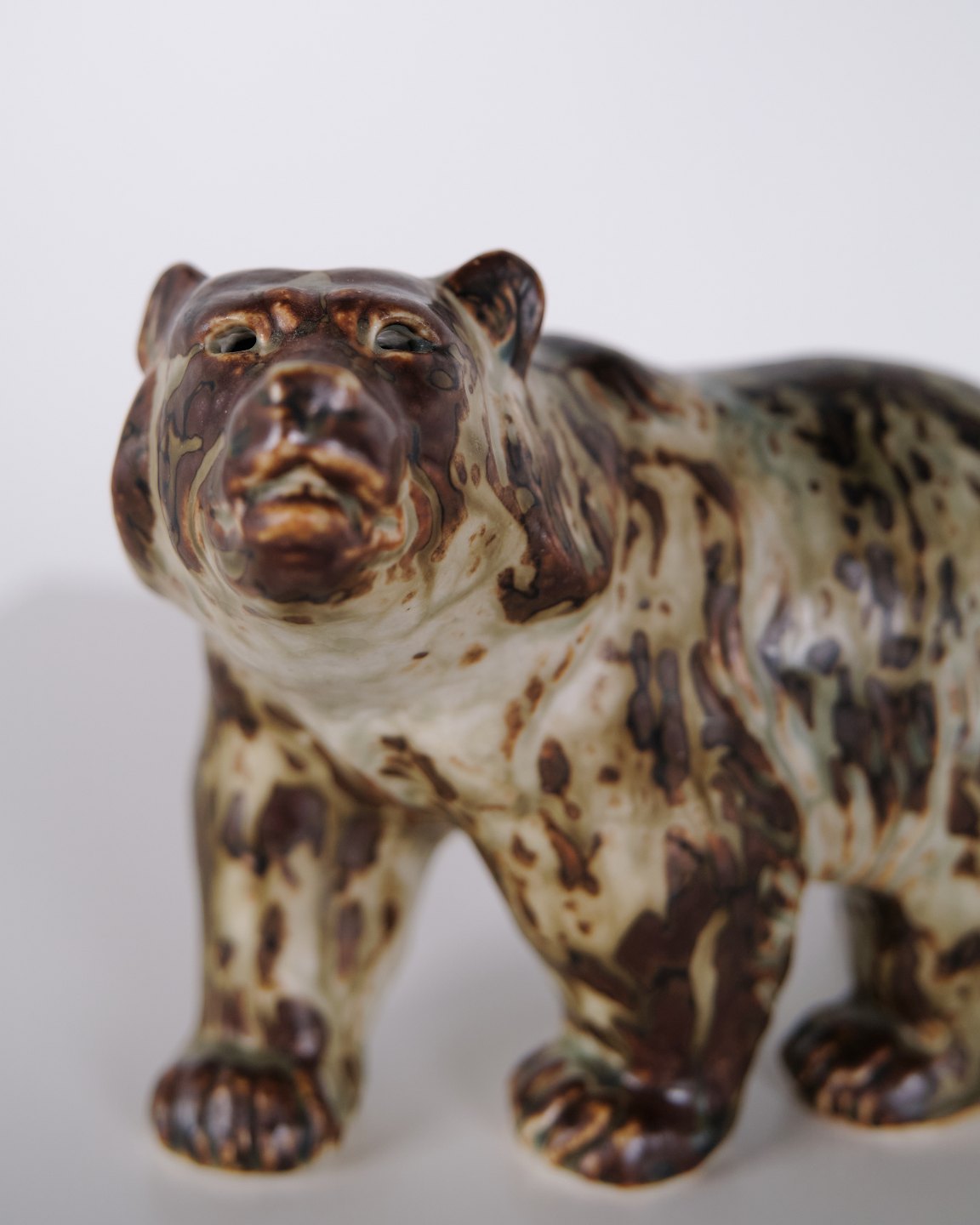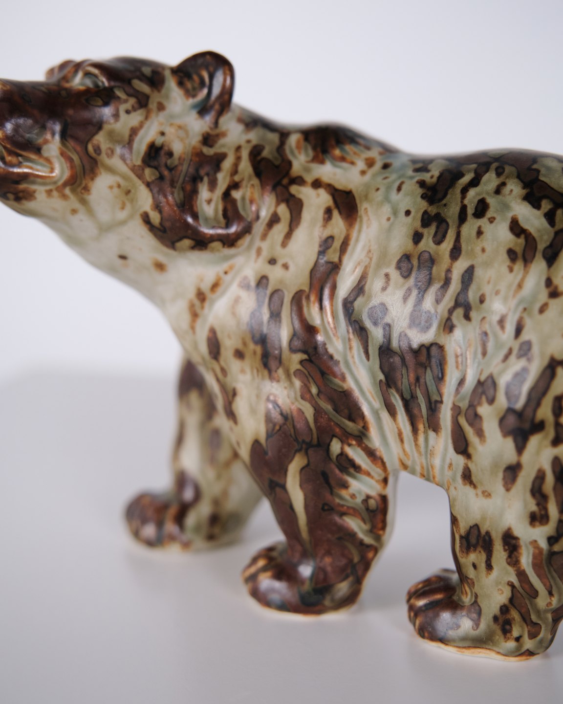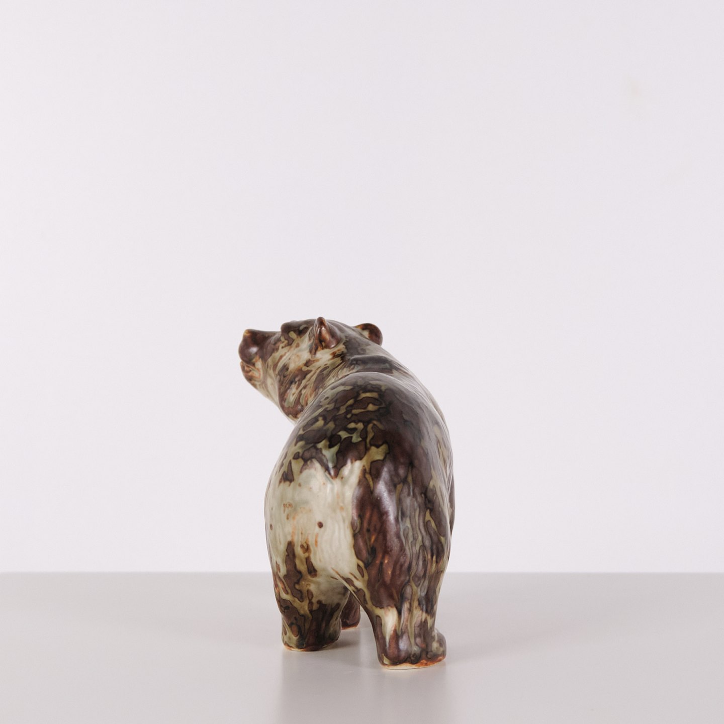 Keramikfigur med motiv af bjørn, model 20155, designet af Knud Kyhn for Royal Copenhagen. Figuren er udført i stentøj og produceret hos Royal Copenhagen omkring 1960. Modellen er en del af Kyhns omfattende arbejde med dyrefigurer, kendetegnet ved tydelig form og fokus på dyrets kropsvolumen. Et klassisk eksempel på dansk keramisk design fra midten af det 20. århundrede.