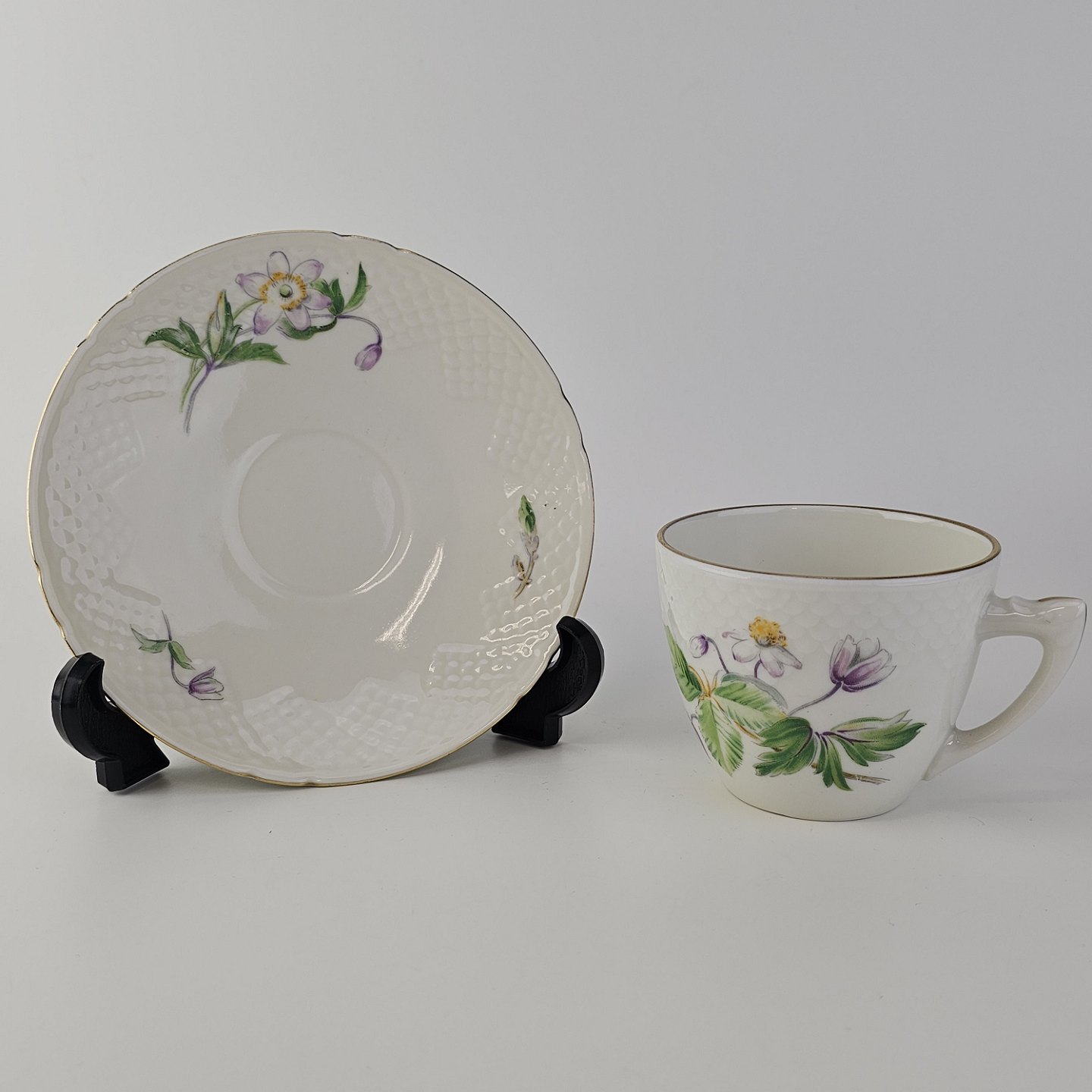 Kop med underkop i porcelæn fra stellet Frigga Anemone
