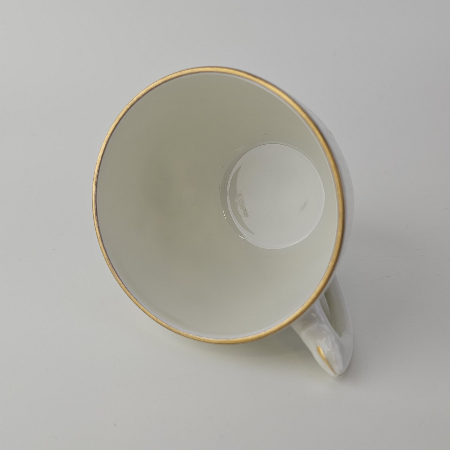 Frigga Anemone er cremefarvet porcelæn dekoreret med motiv af anemoner og bøgeløv med guldkant