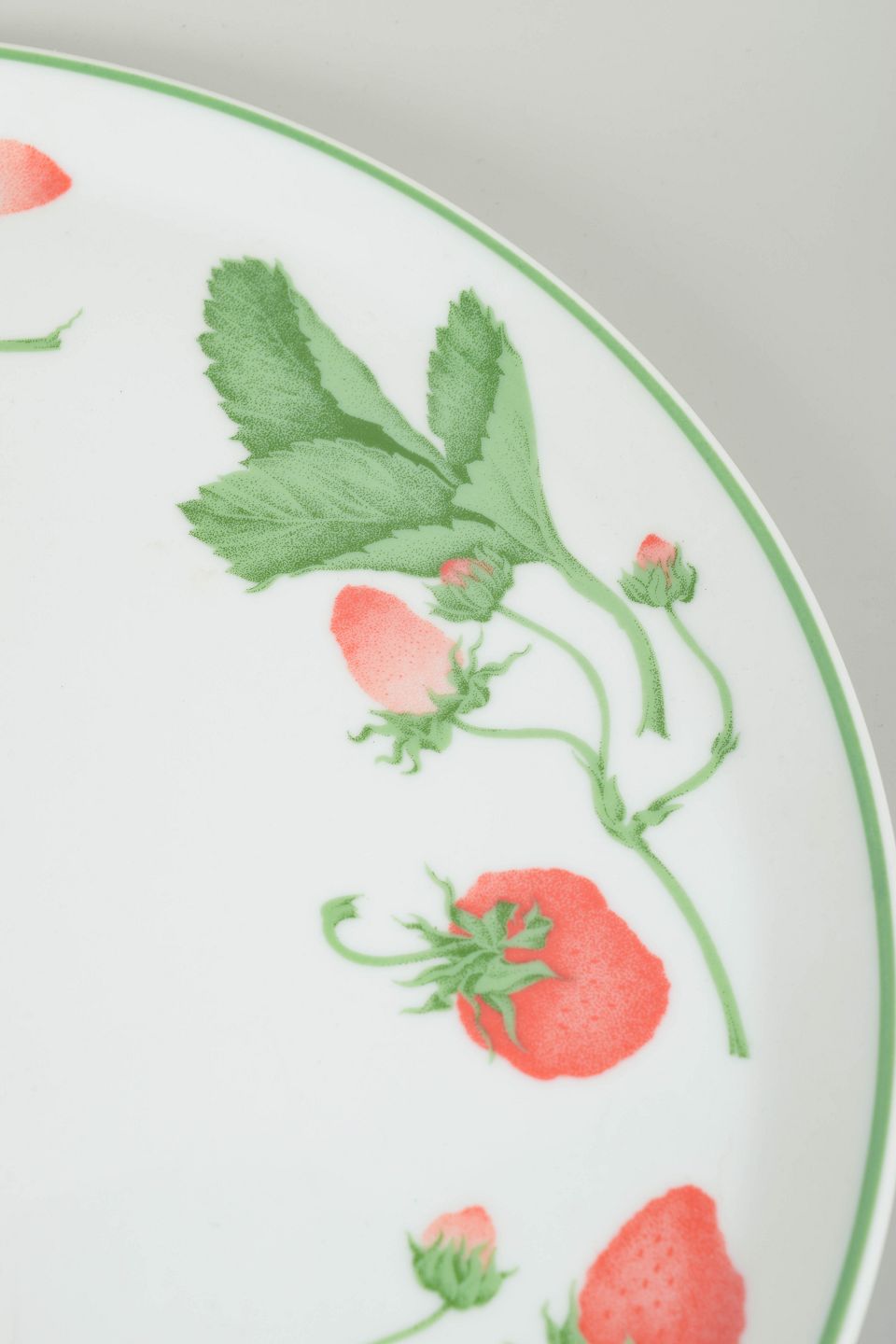Limoges-porcelæn er kendt for sin fine gods-kvalitet og blev i det 20. århundrede ofte dekoreret med lette, naturalistiske motiver til det moderne dækkebord. Serien Fraise er et typisk eksempel på 1980’ernes dekorative udtryk, hvor frugt- og botaniske motiver giver et friskt, klassisk præg til servering og borddækning.