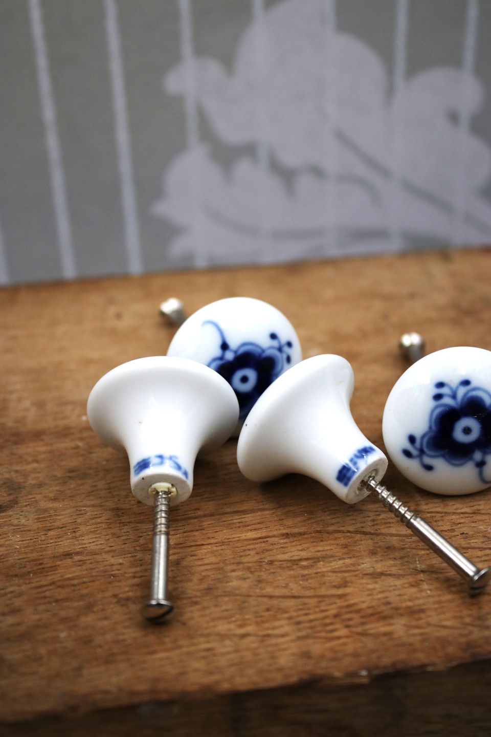 Gamle Musselmalet porcelæns greb / knopper fra Royal Copenhagen til møbler. Dia.: 3cm.