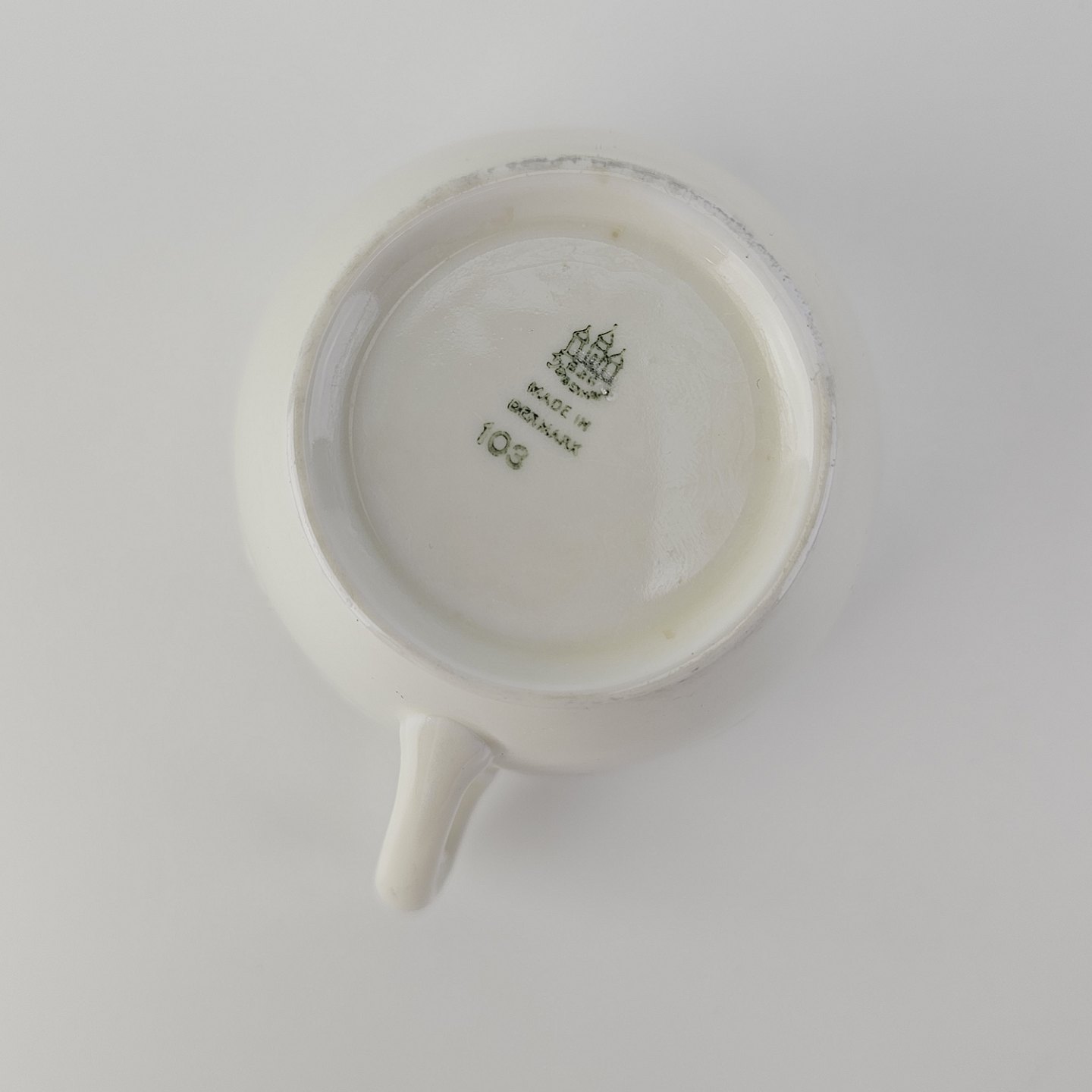 Elegance er cremefarvet glaseret porcelæn med skæl mønster