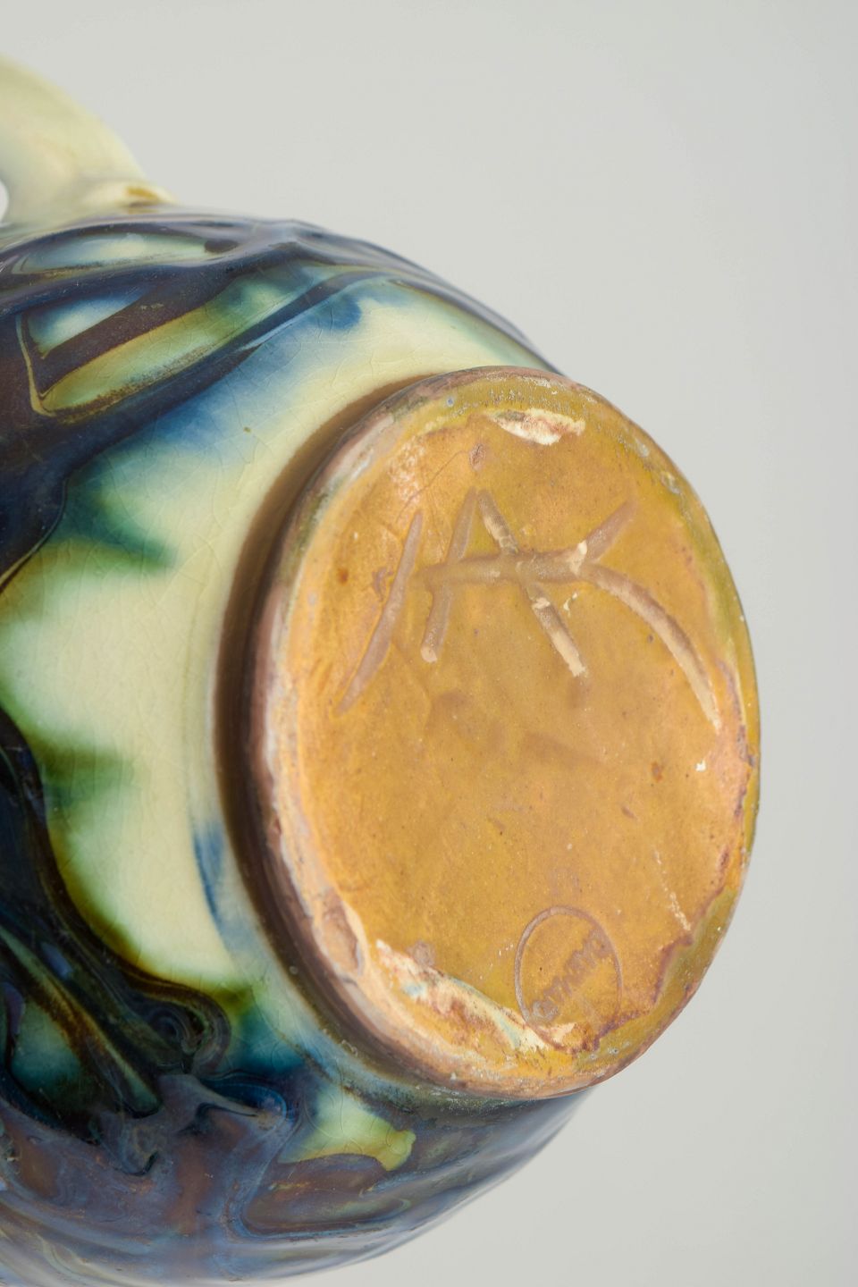 Kähler Keramik i Næstved spillede en central rolle i udviklingen af dansk kunstkeramik i første halvdel af det 20. århundrede. I 1930’erne arbejdede værkstedet målrettet med plastiske dekorationer og eksperimenterende glasurer, hvor inspirationen ofte blev hentet fra naturens former og Art Deco-periodens stiliserede ornamentik. Reliefdekorerede kander som denne viser Kählers evne til at forene funktionelle former med skulpturel udsmykning og håndværksmæssig kvalitet, hvilket har gjort værkstedets produktion fra perioden særligt eftertragtet blandt samlere.