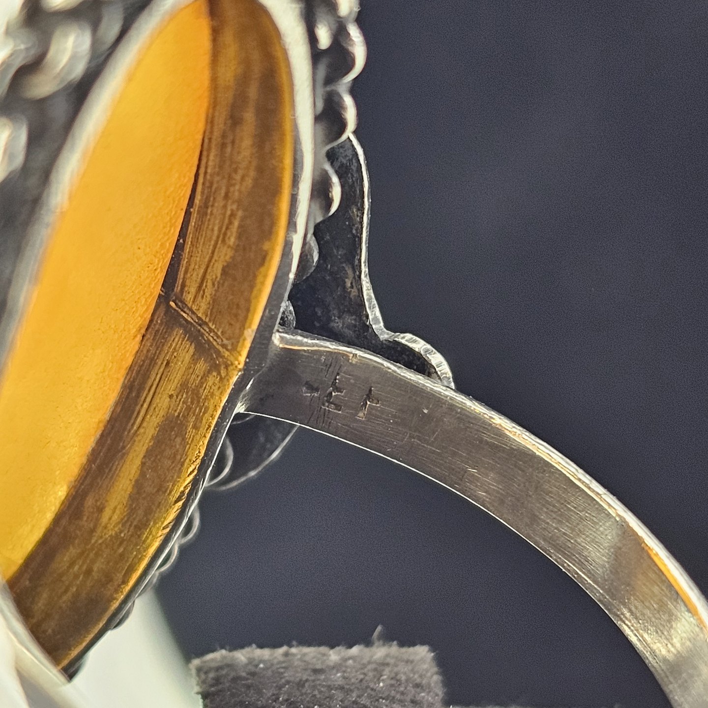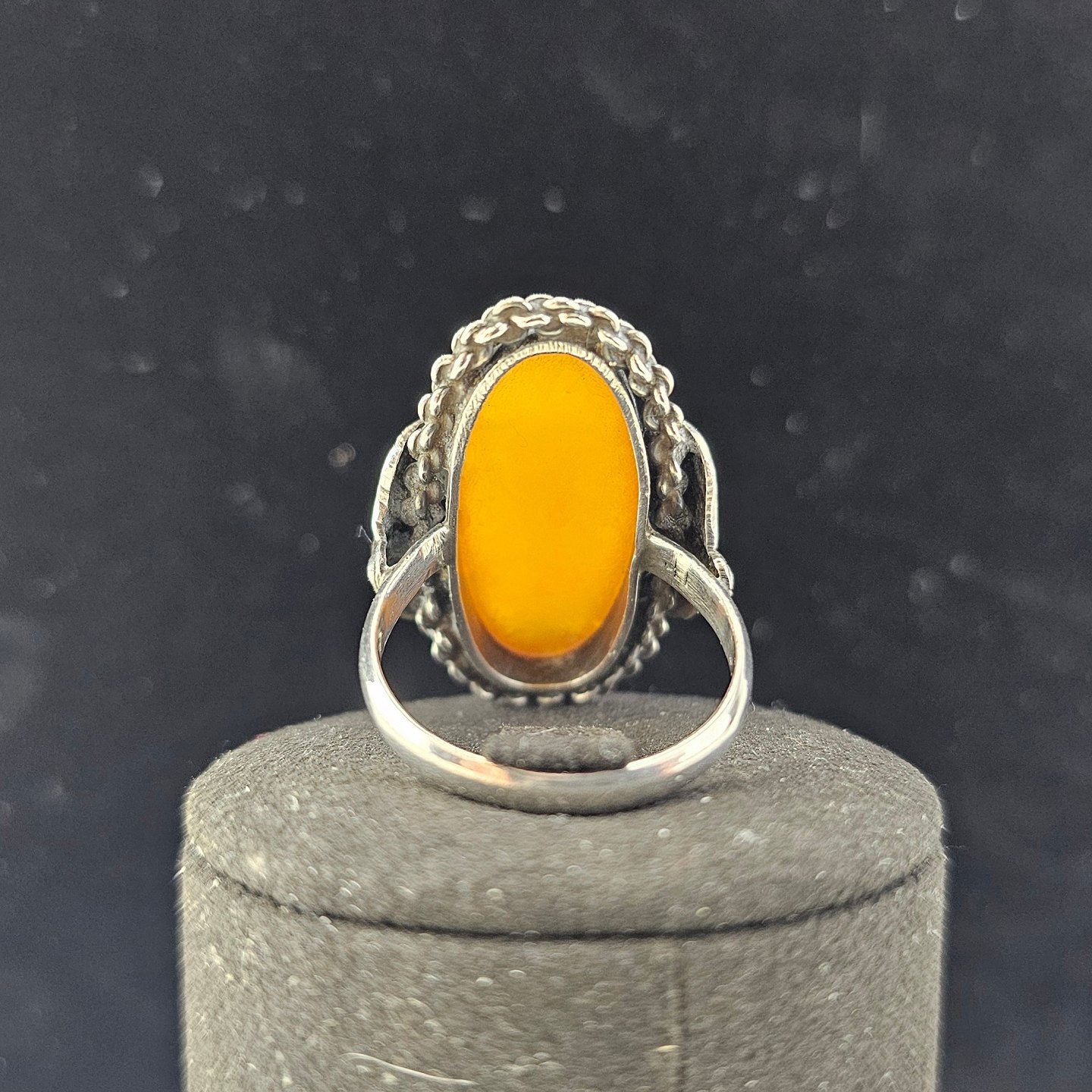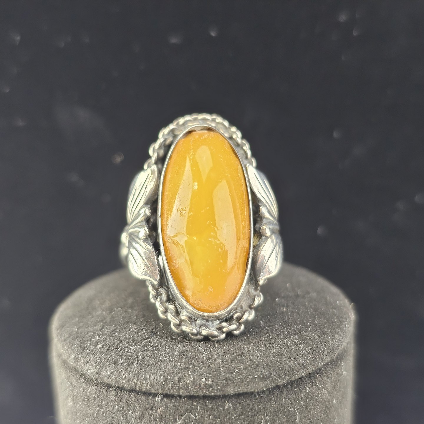 Ring i sølv udformet i skønvirke stil med rav