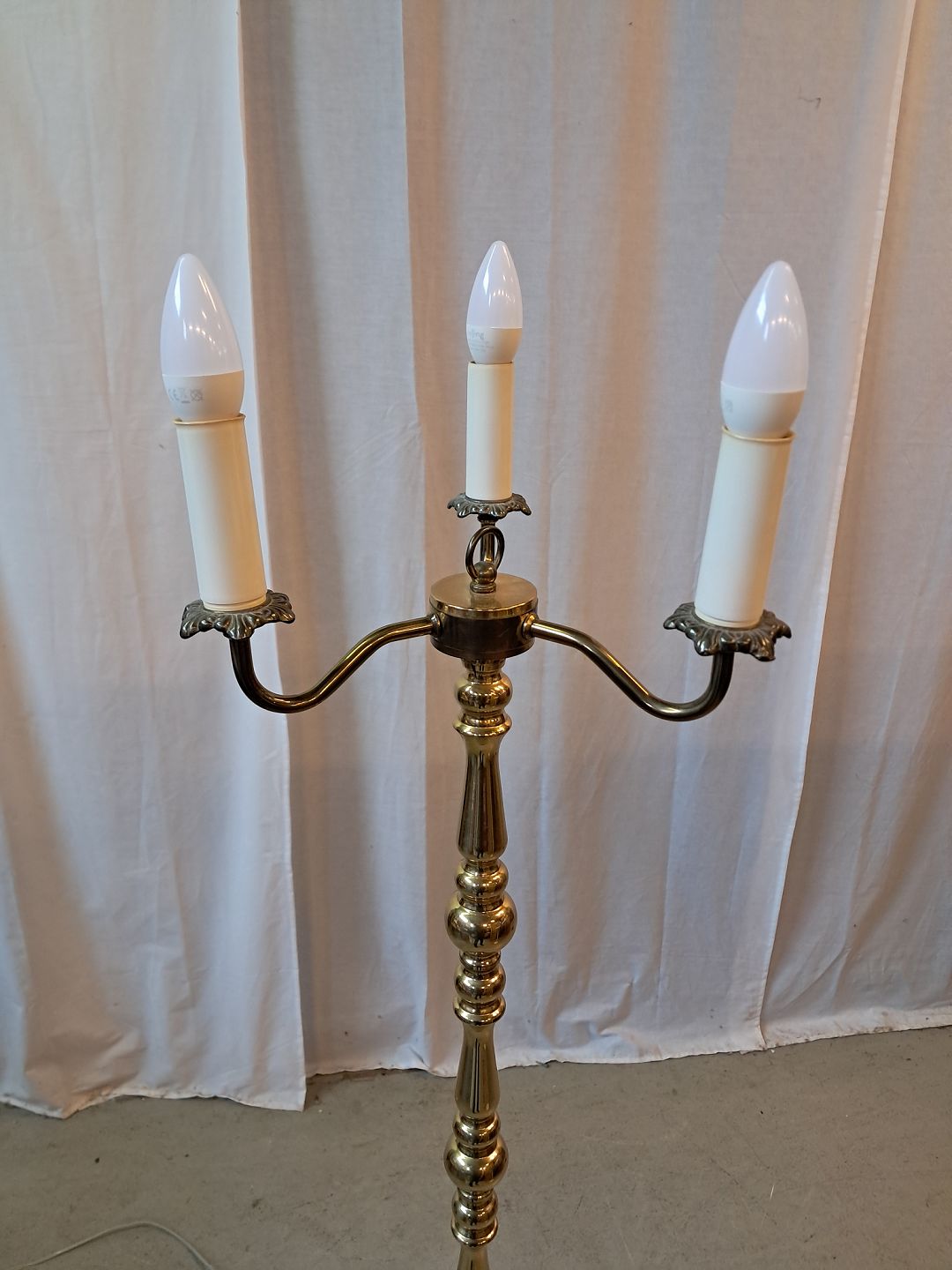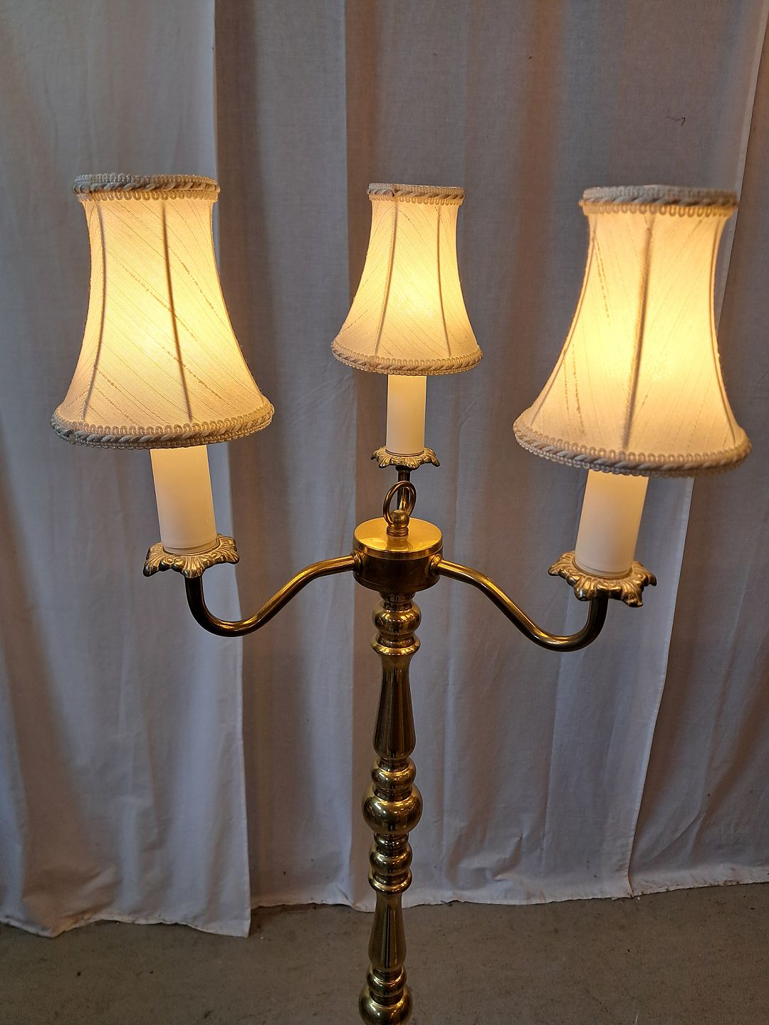 Standerlampe i messing med 3 skærme, fra 1980erne.