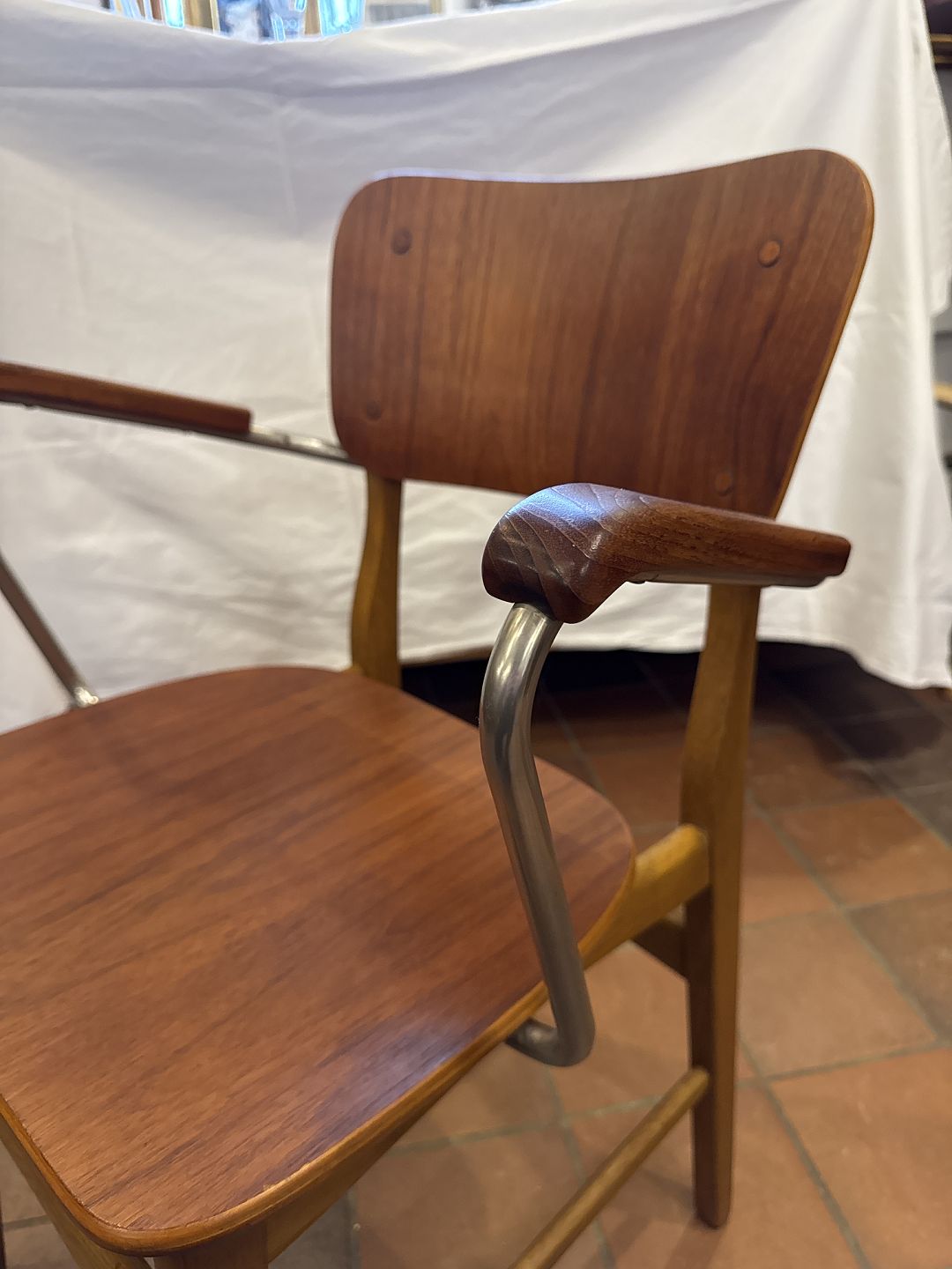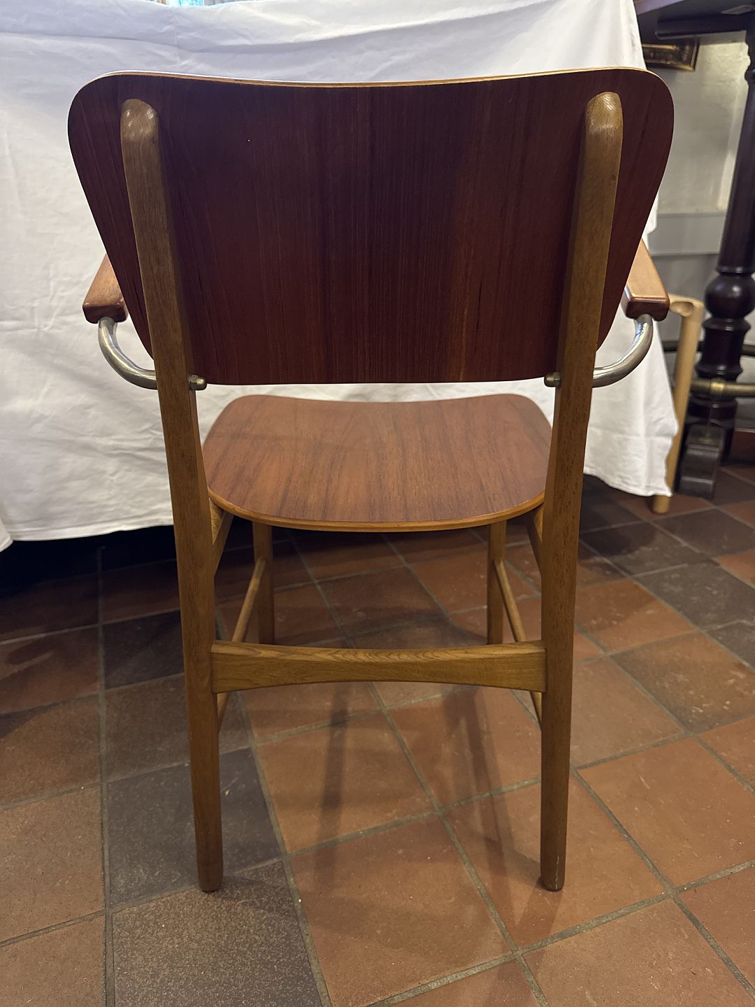 Ib Kofod Larsen armstol med stel i eg samt sæde og ryg i teak og metal. Fremstillet ca. 1960’erne