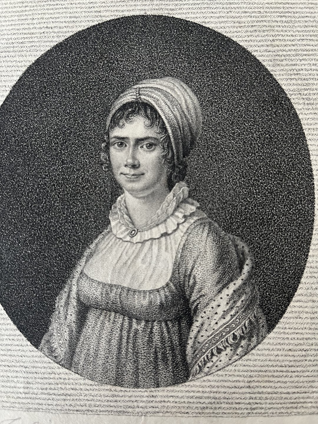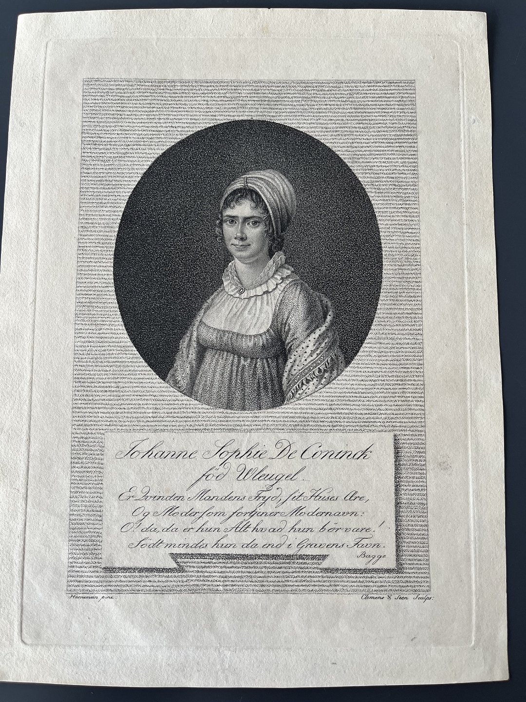 Kobberstik af J.F. Clemens - Portræt af fru Johanne Sophie de Coninck.